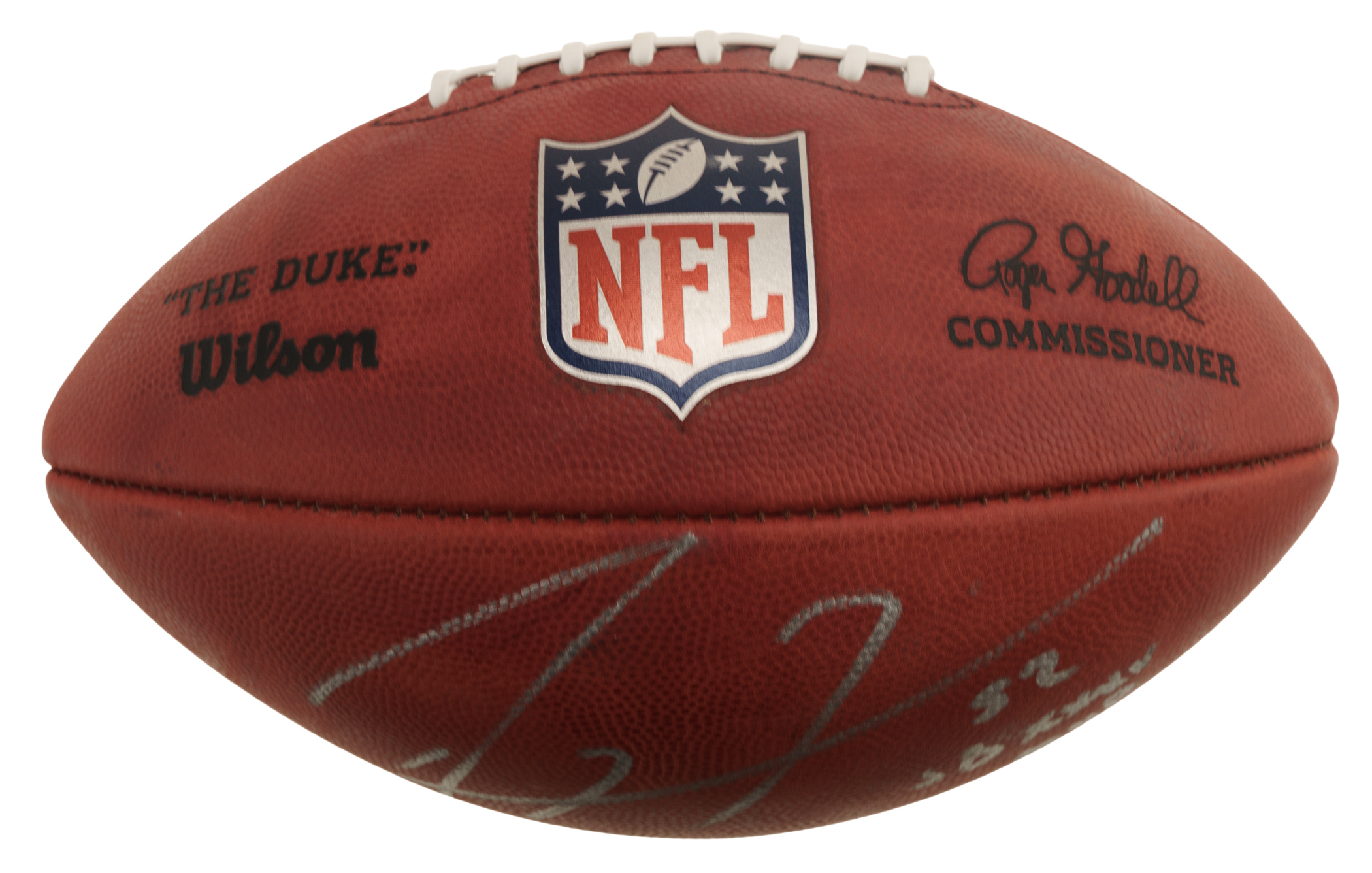 Baltimore Ravens football Hall of Famer Ray Lewis signed football. Beckett certification sticker is affixed to the football. The size/weight of this item requires that there will be an additional shipping charge for this lot.