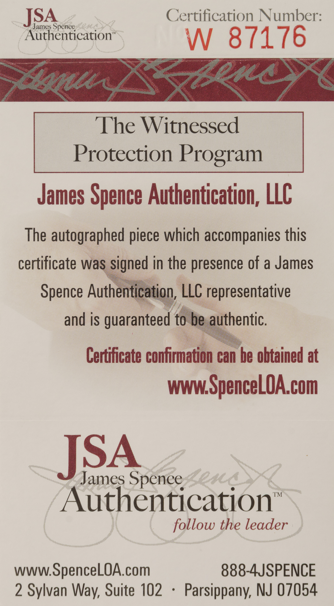 Chicago Bears football Hall of Famer Gale Sayers signed football. Basic certification from James Spence/JSA. The size/weight of this item requires that there will be an additional shipping charge for this lot.