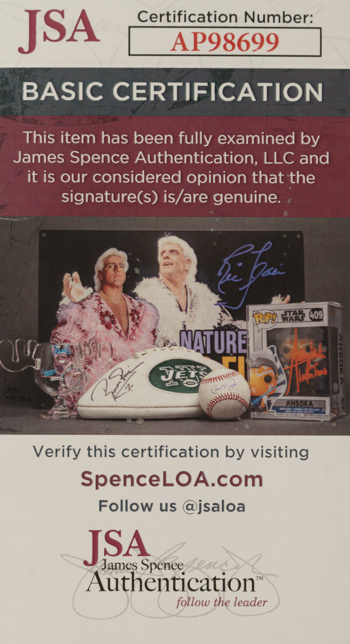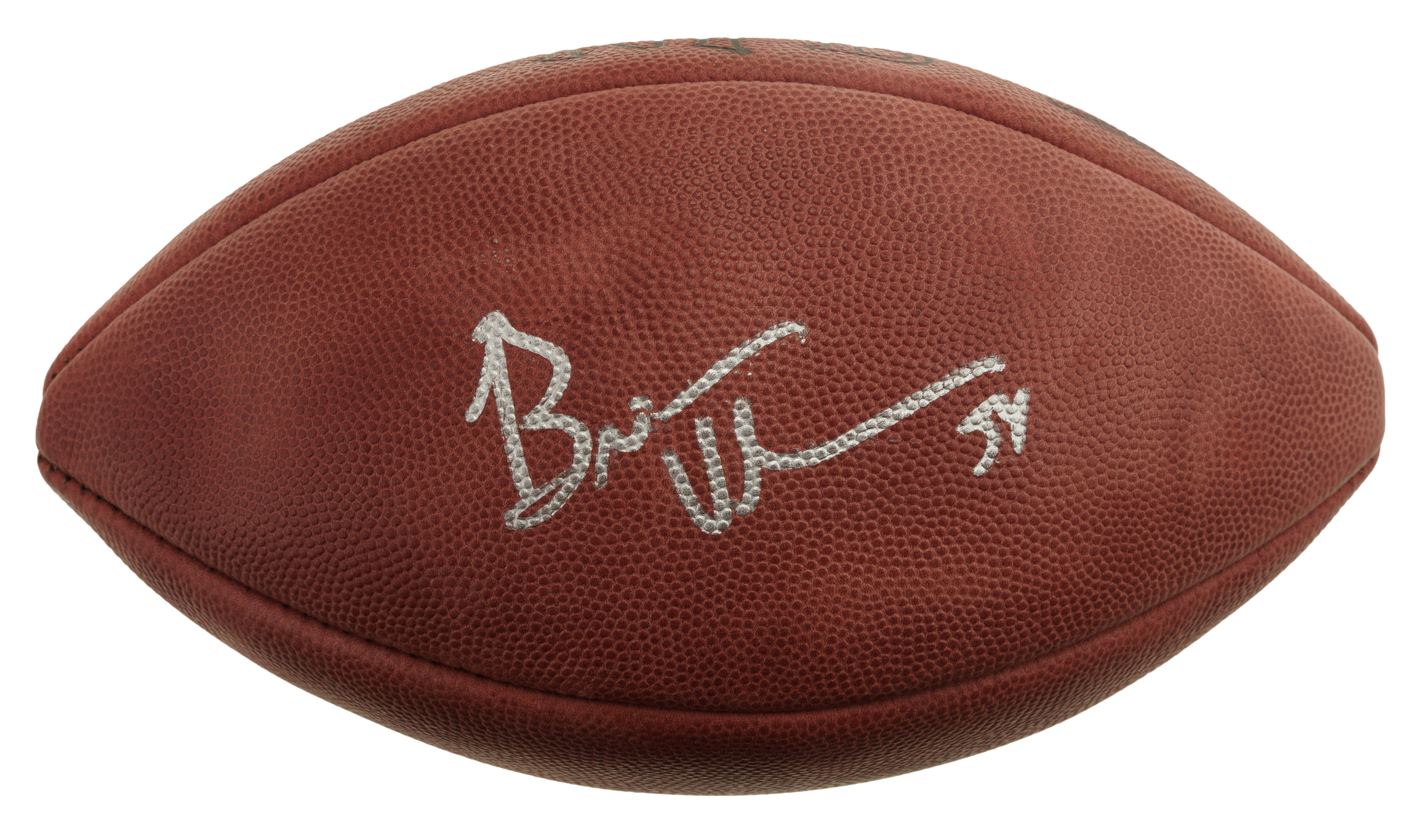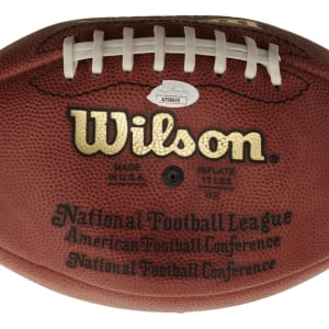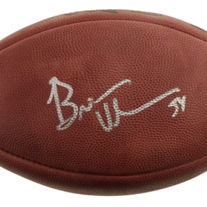 Chicago Bears football Hall of Famer Brian Urlracher signed football. Basic certification from James Spence/JSA. The size/weight of this item requires that there will be an additional shipping charge for this lot.