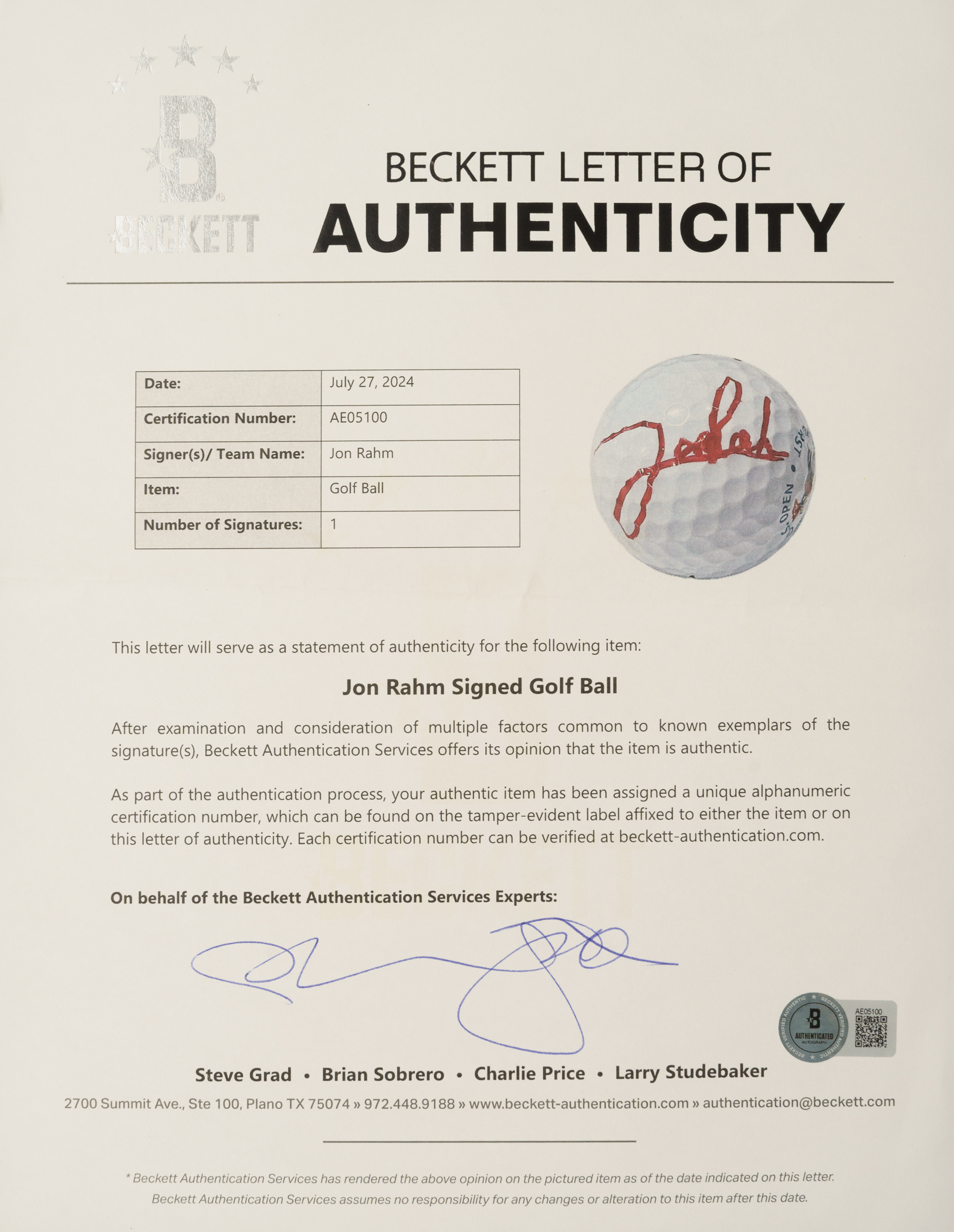 Jon Rahm signed golf ball. Full LOA from Beckett.