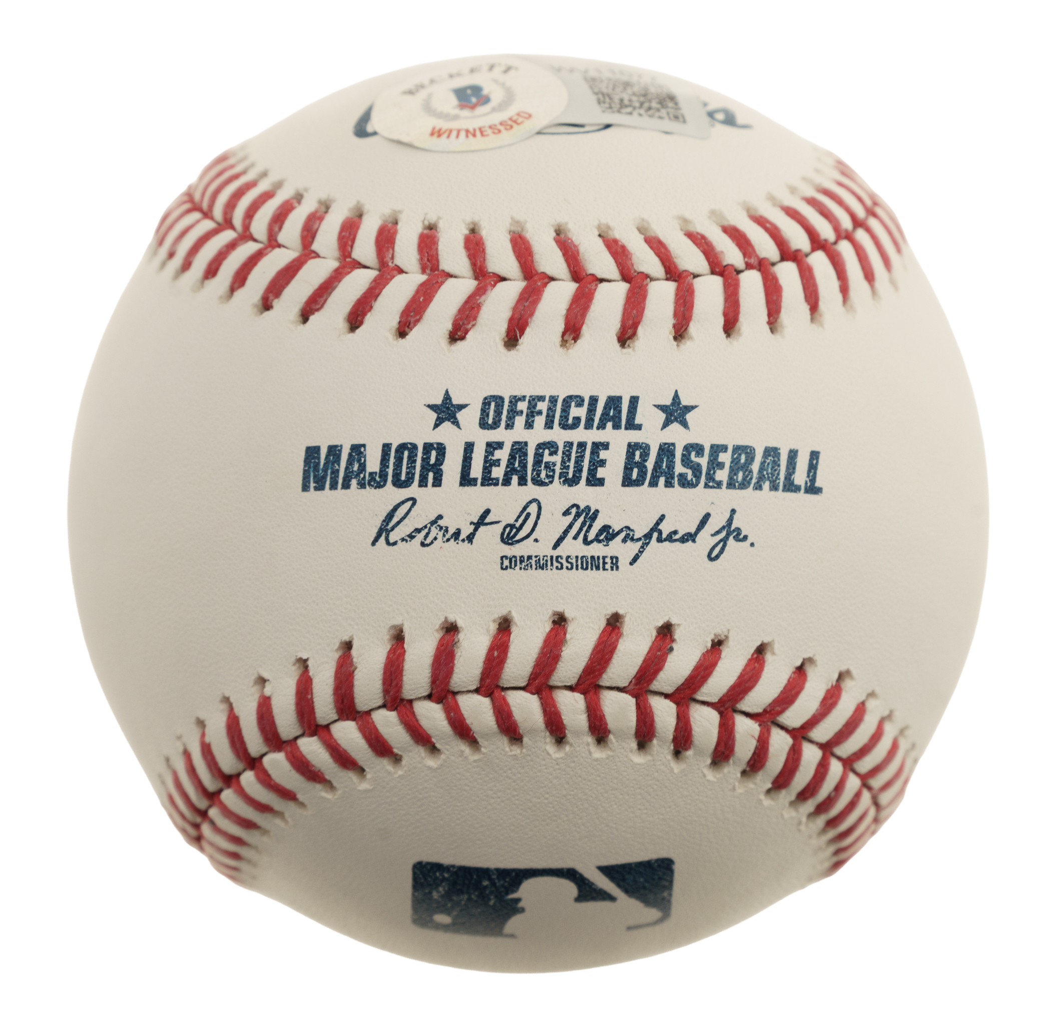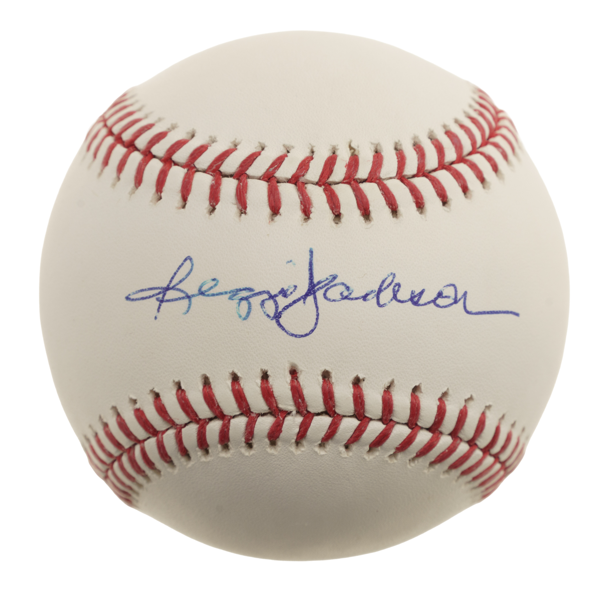 Oakland Athletics Hall of Famer Reggie Jackson signed baseball. Beckett certification sticker is affixed to the baseball.