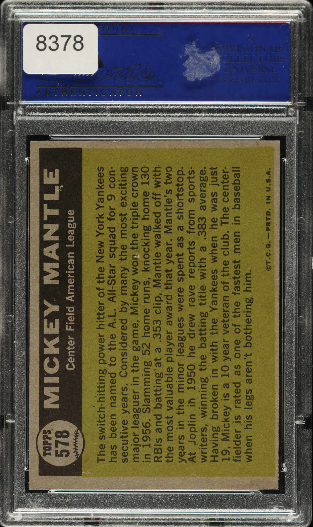 1961 Topps #578 Mickey Mantle All-Star PSA MINT 9
