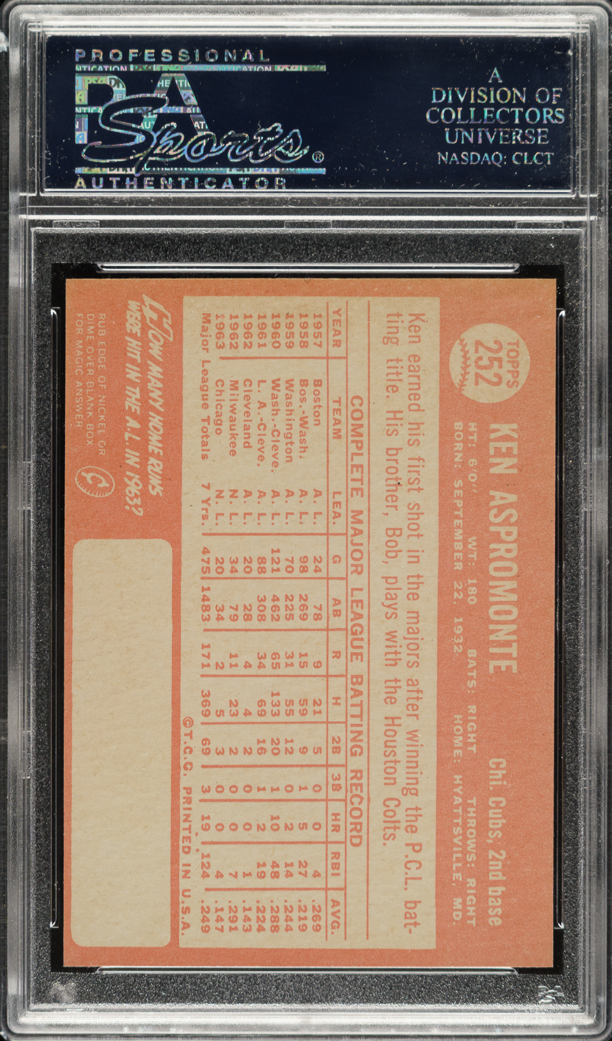 1964 Topps #252 Ken Aspromonte PSA GEM MINT 10