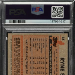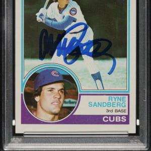 PSA/DNA has encapsulated the card, grading the signature GEM MINT 10 and the card EX-MT 6. Chicago Cubs Hall of Famer Ryne Sandberg.