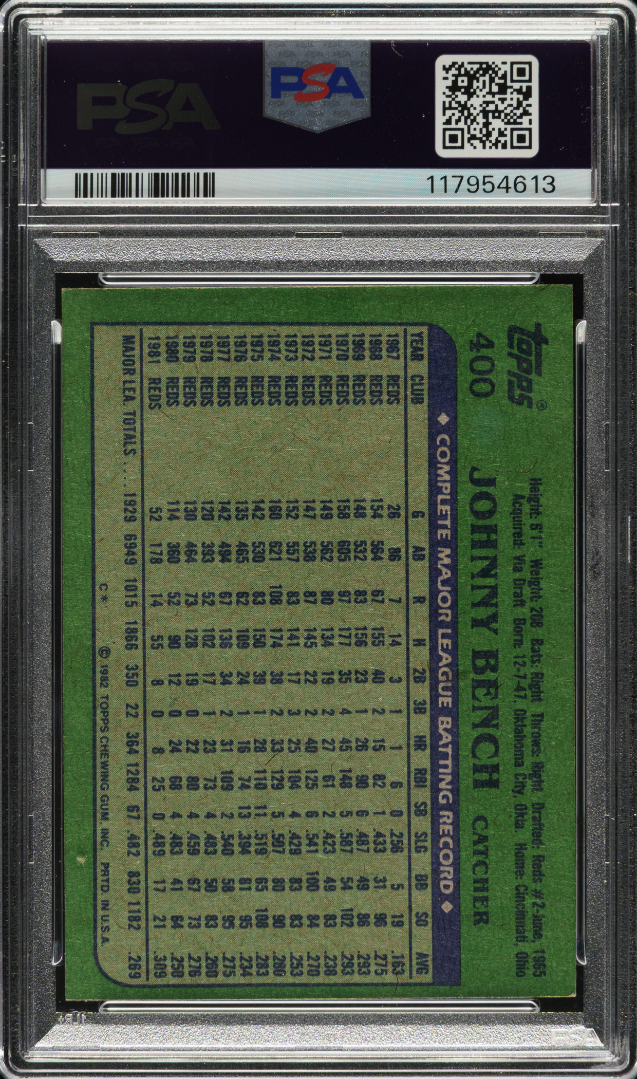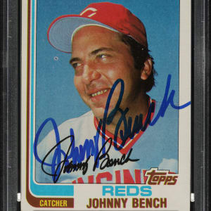 PSA/DNA has encapsulated the card, grading the signature MINT 9 and the card EX 5. Cincinnati Reds Hall of Famer Johnny Bench.