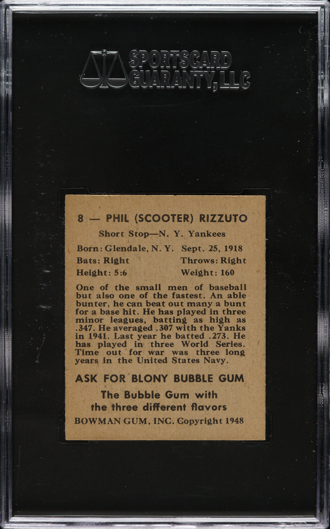 1948 Bowman #8 Phil Rizzuto SGC NM/MT+ 92