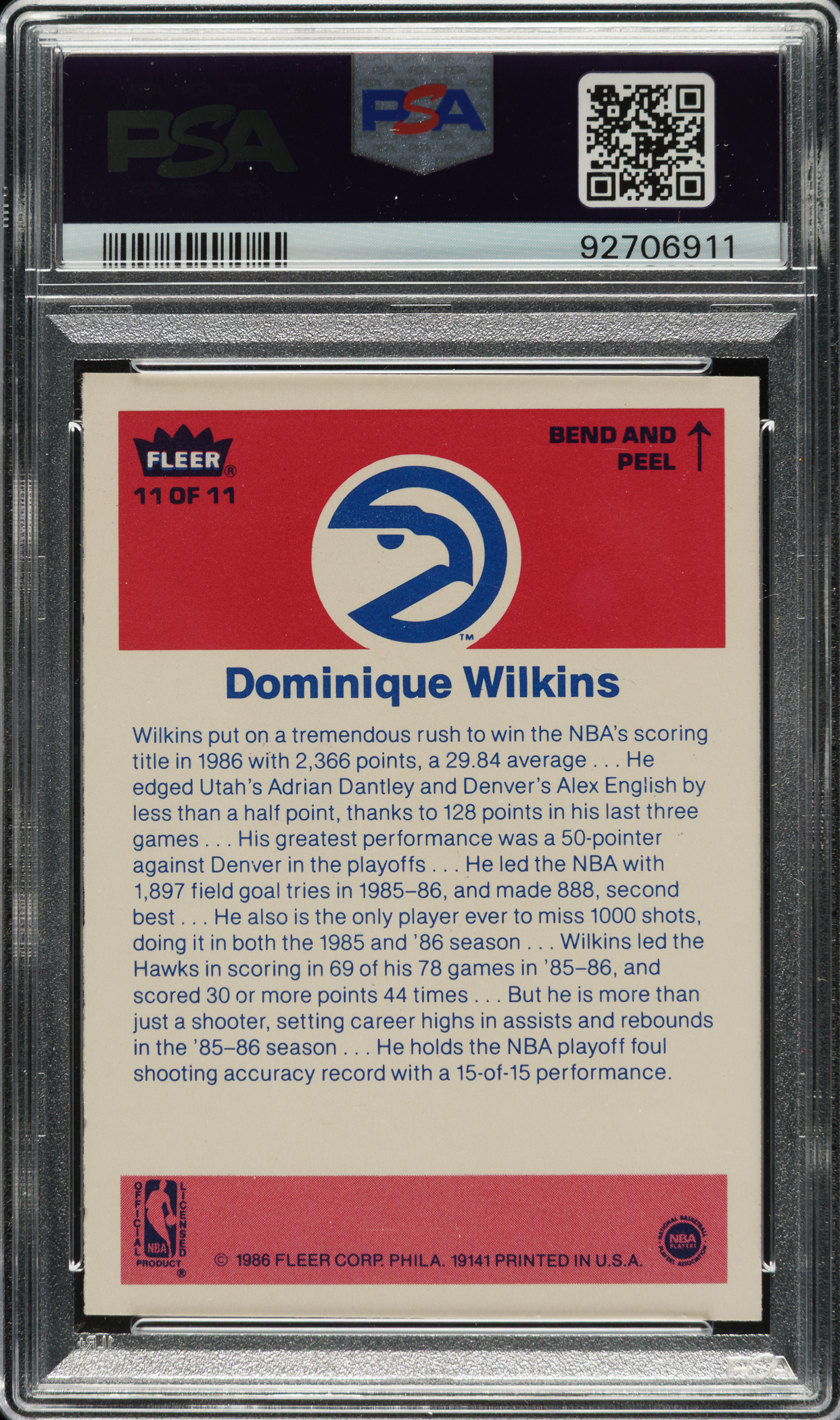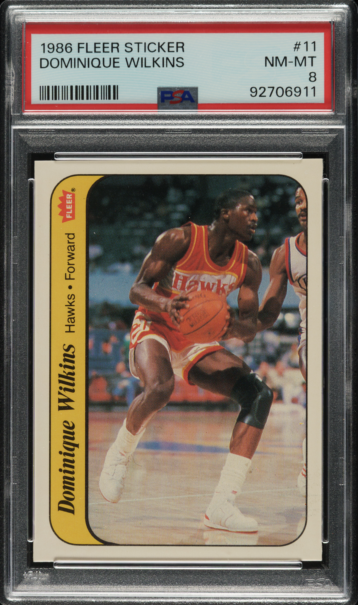 1986-1987 Fleer Basketball Sticker #11 Dominique Wilkins Rookie PSA NM-MT 8