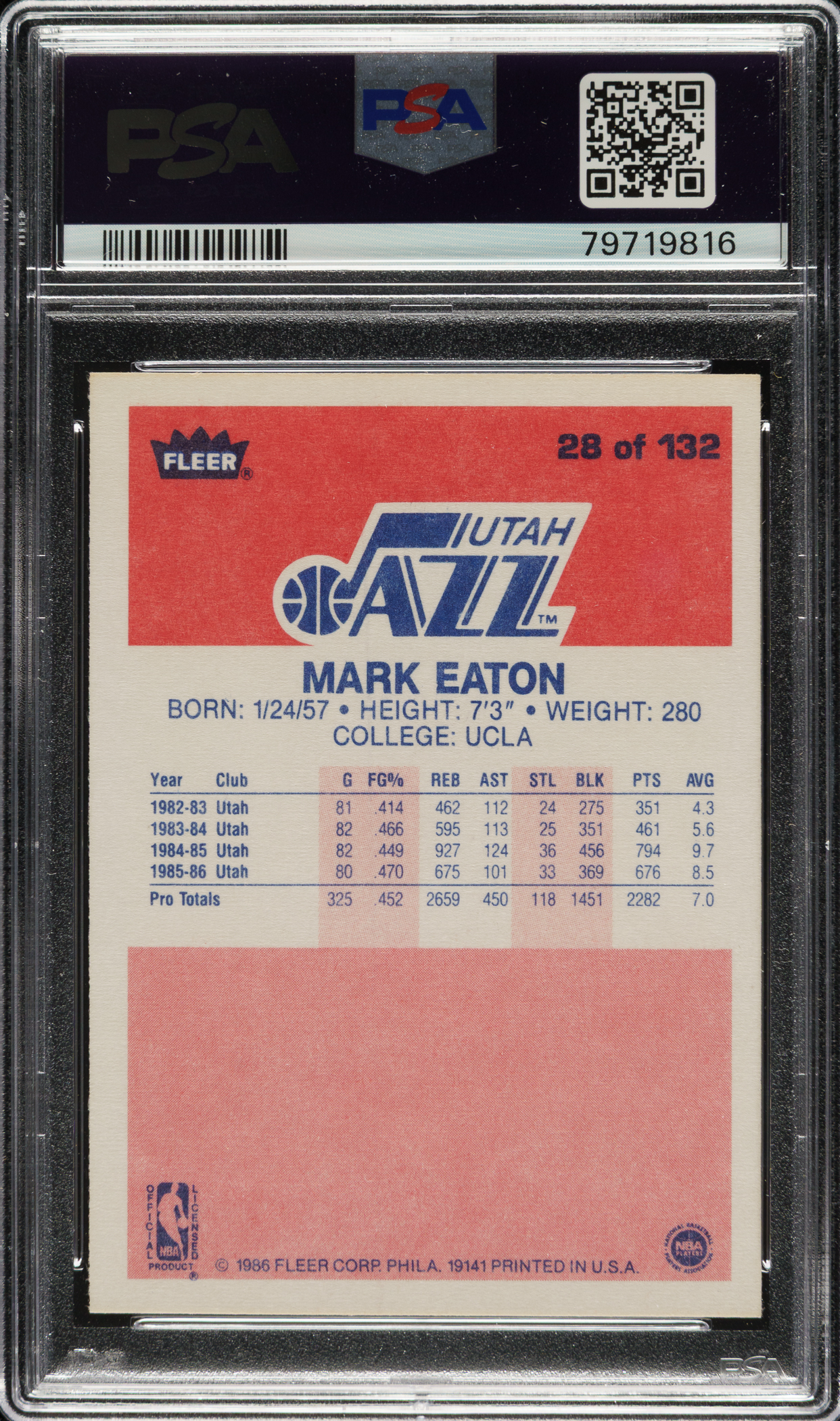 1986-1987 Fleer Basketball #28 Mark Eaton PSA GEM MINT 10