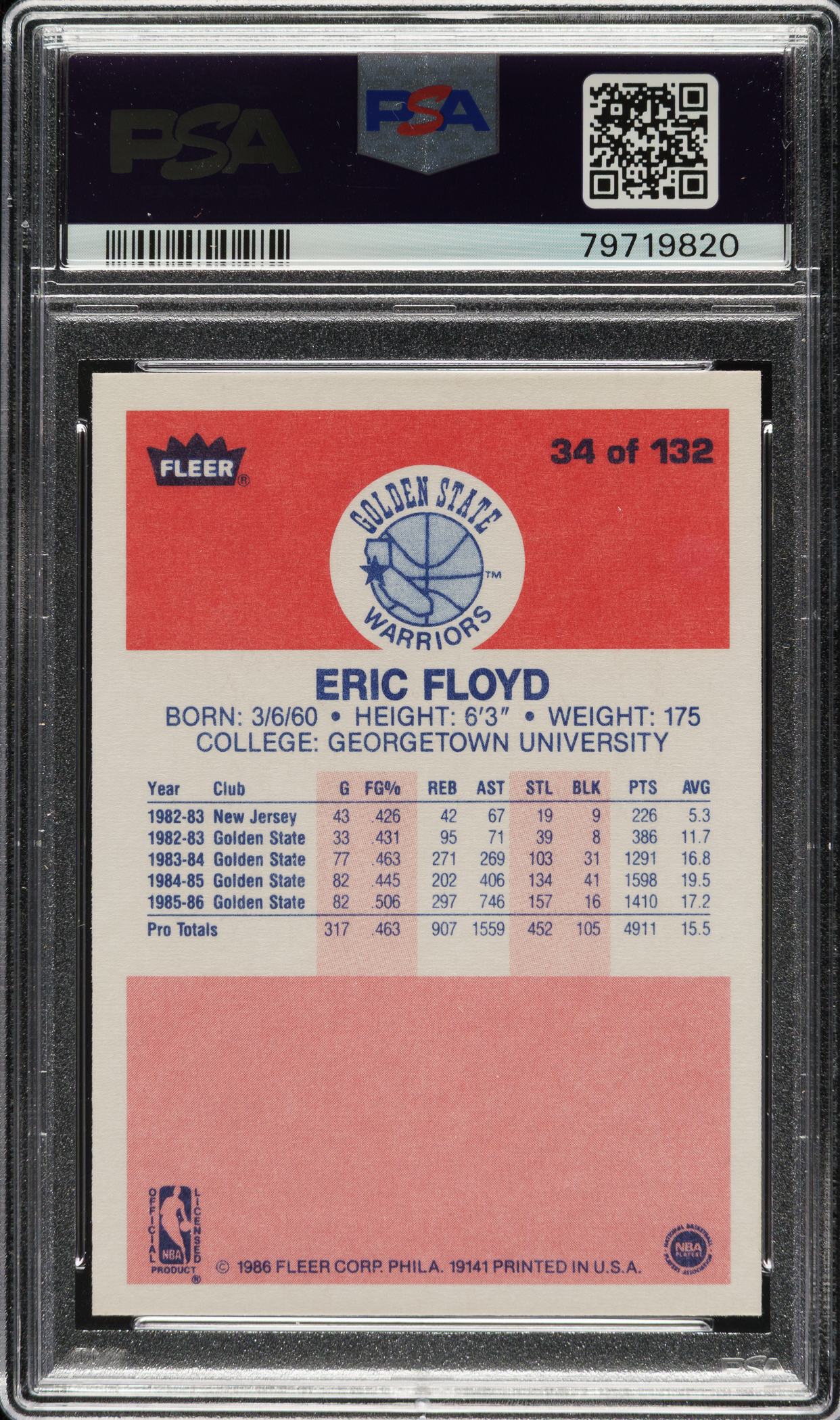 1986-1987 Fleer Basketball #34 Eric Floyd PSA GEM MINT 10