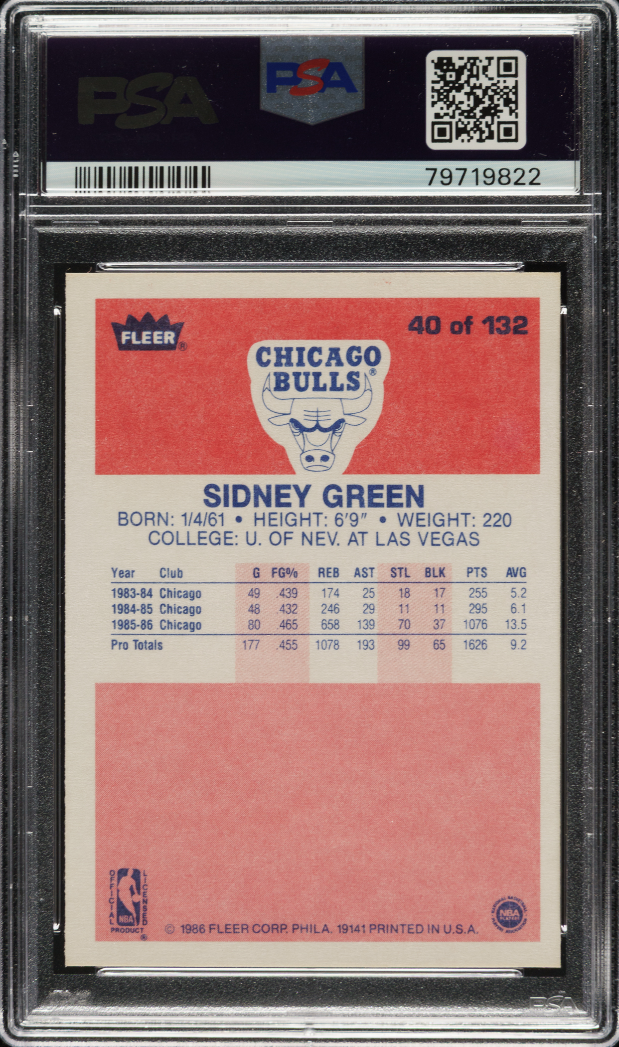 1986-1987 Fleer Basketball #40 Sidney Green PSA GEM MINT 10