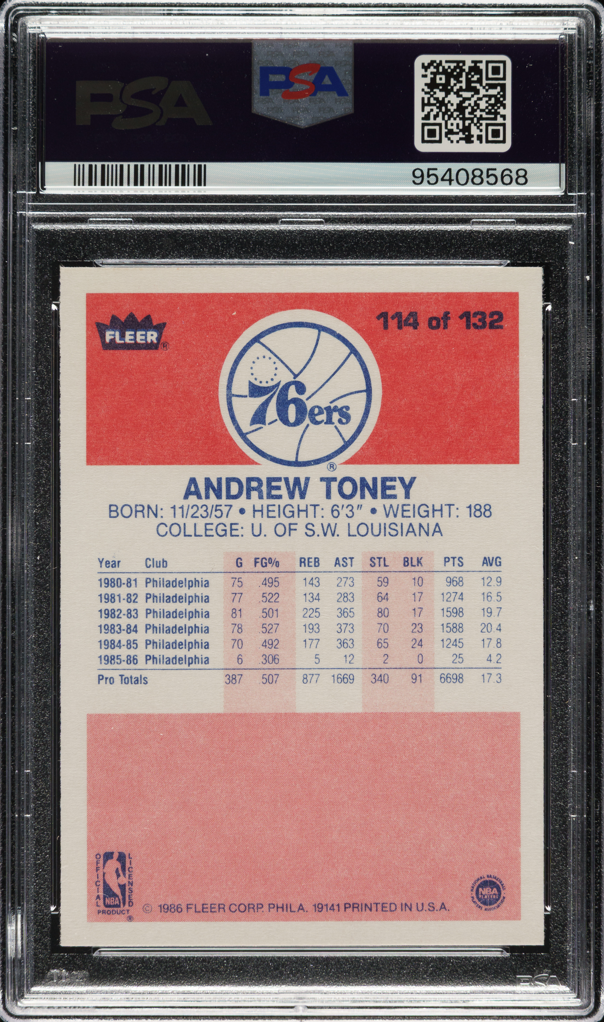 1986-1987 Fleer Basketball #114 Andrew Toney PSA GEM MINT 10