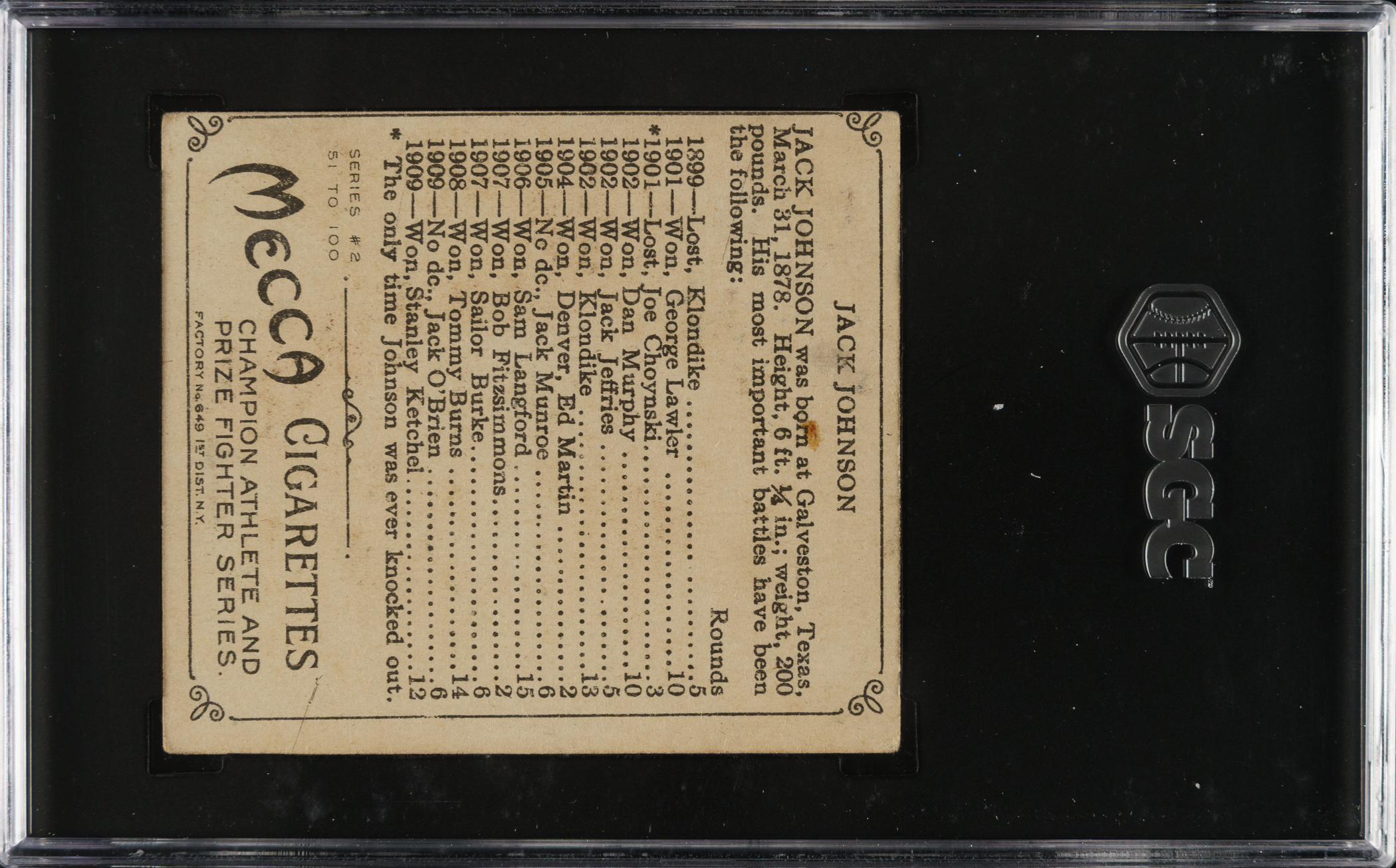 Graded VG/EX 4 by SGC. Boxing Hall of Famer Jack Johnson.