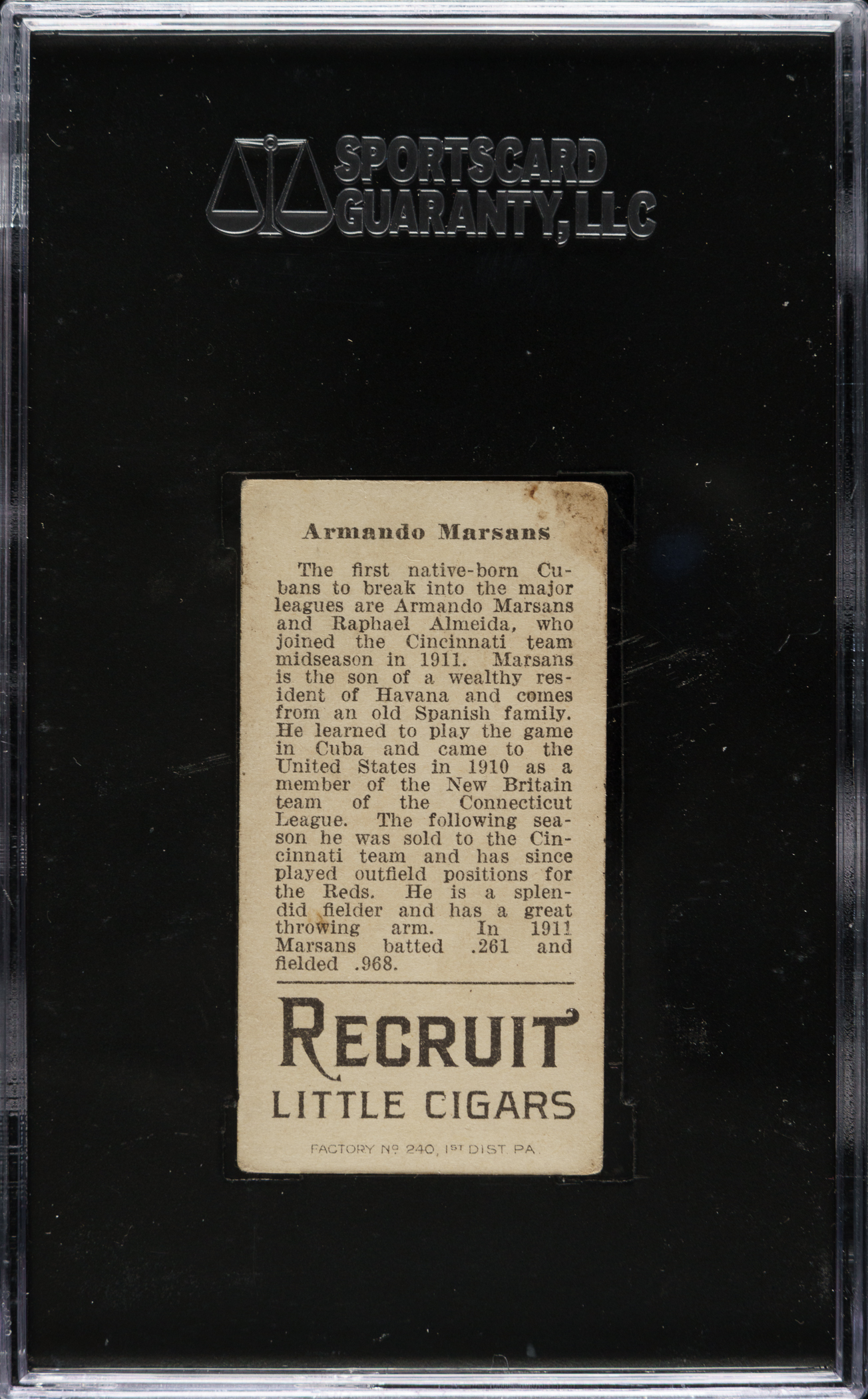 1912 T207 Brown Background Armando Marsans SGC VG/EX 50