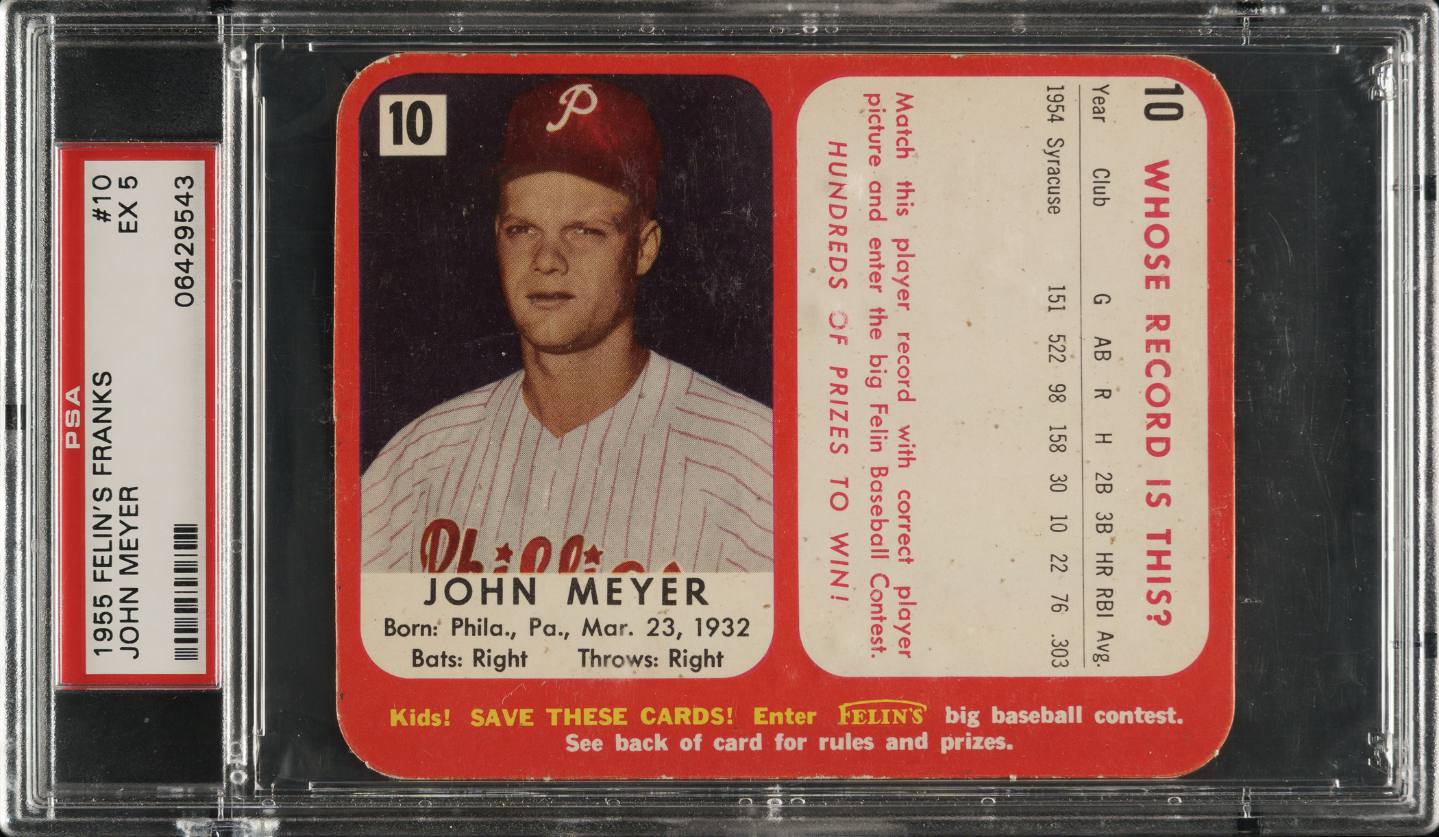1955 Felin's Franks #10 John Meyer PSA EX 5