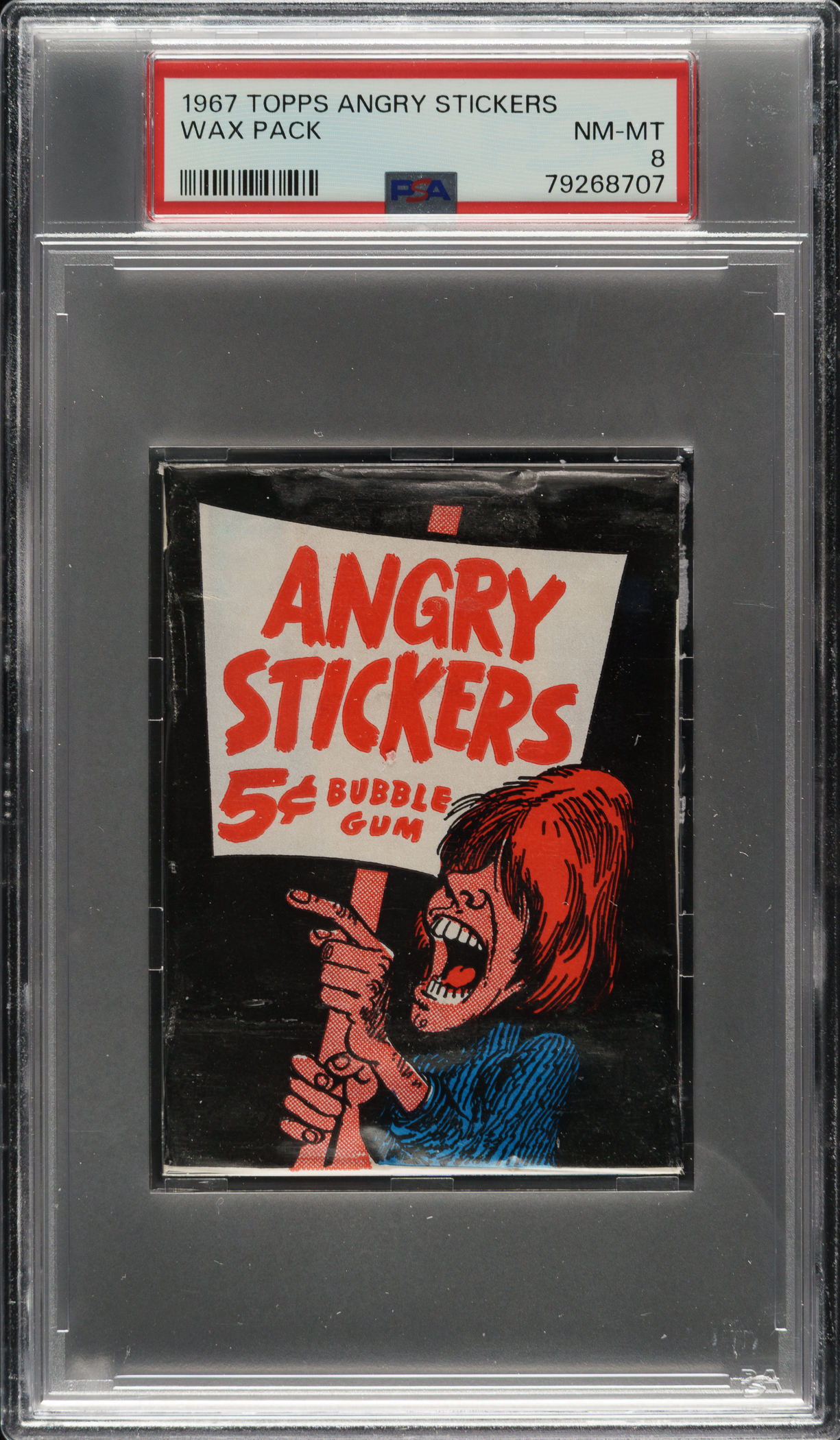 1967 Topps "Angry Stickers" Unopened Wax Pack PSA NM-MT 8 - Highest Graded!
