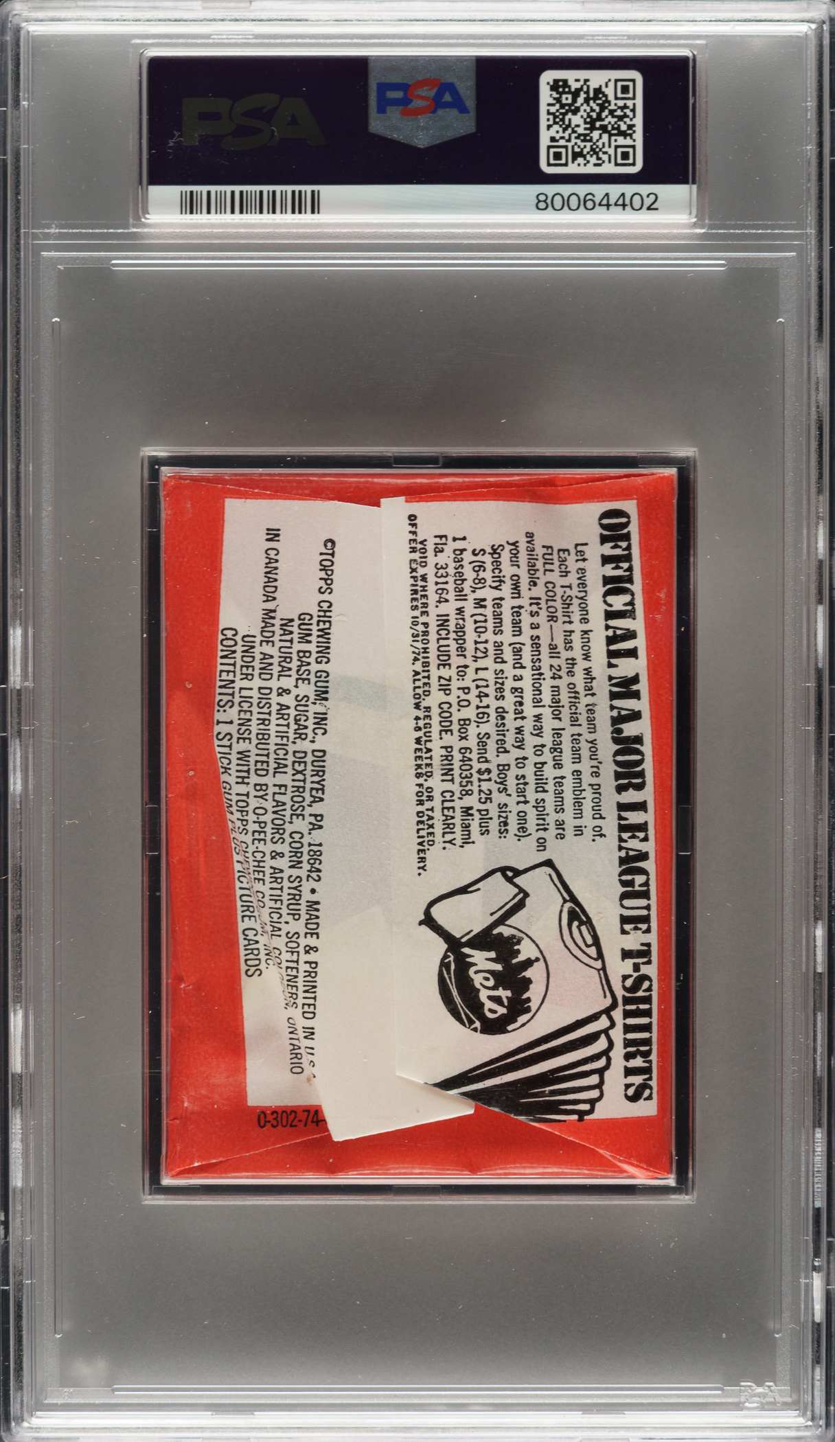 1974 Topps Unopened Wax Pack PSA NM-MT 8