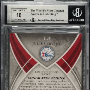 Graded MINT 9 with GEM 10 signature by BGS. Philadelphia 76ers Hall of Famer Julius Erving.