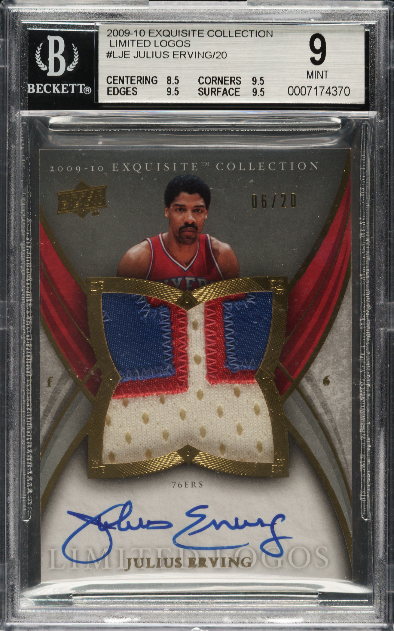 2009-2010 Upper Deck Exquisite Collection Limited Logos Basketball #L-JE Julius Erving #6/20 BGS MINT 9 with GEM 10 Signature