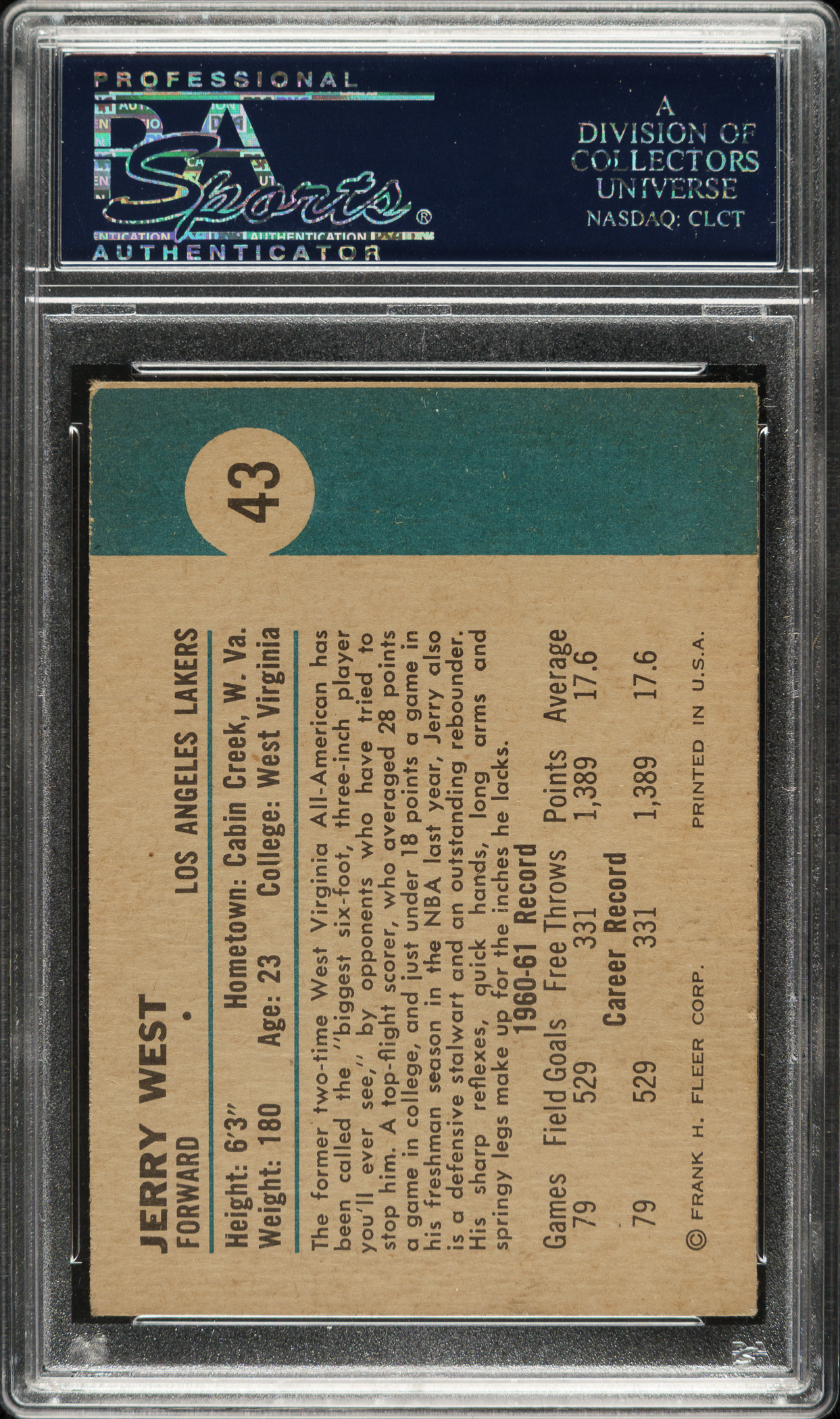 1961-1962 Fleer Basketball #43 Jerry West Rookie PSA VG-EX 4