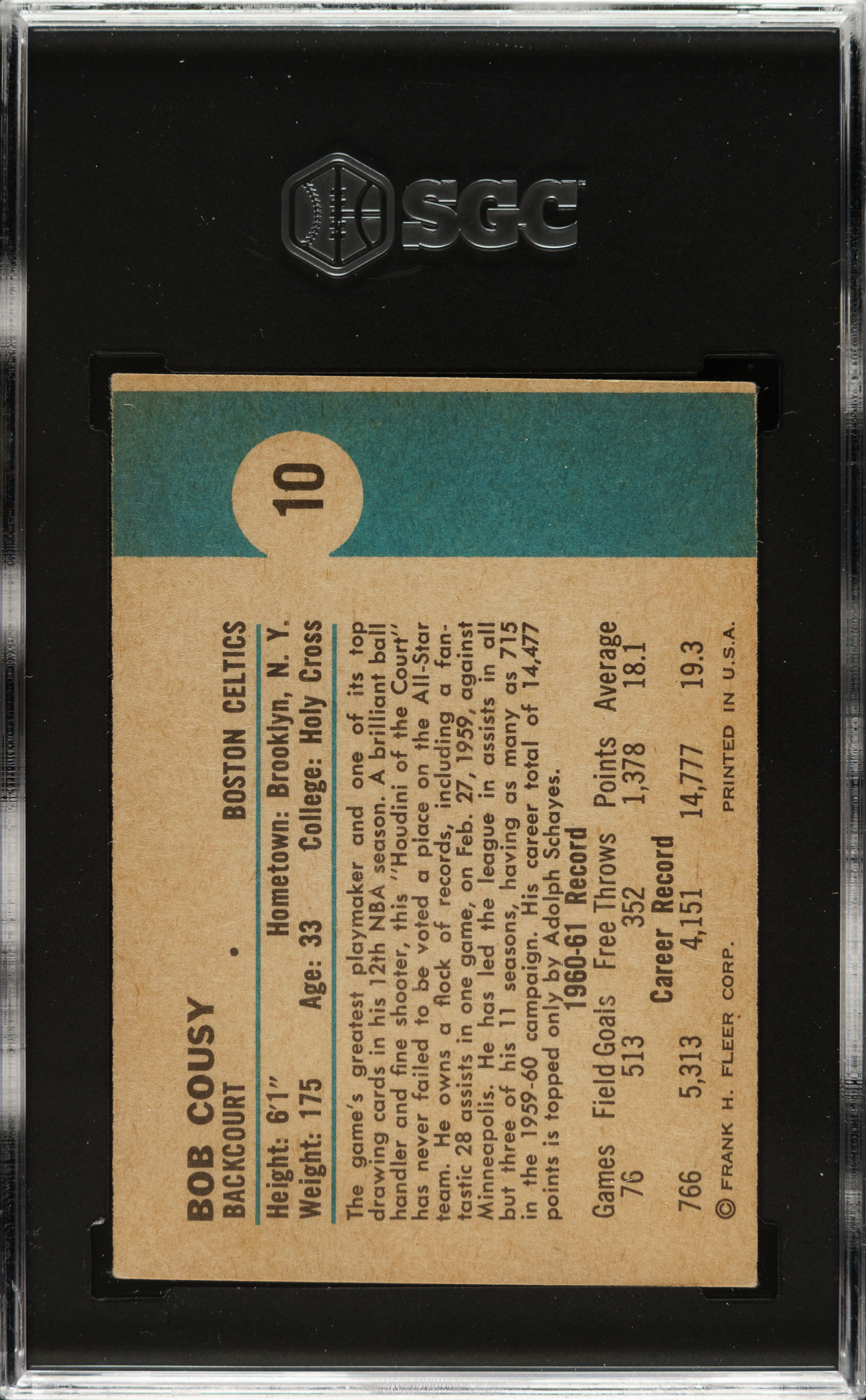 1961-1962 Fleer Basketball #10 Bob Cousy SGC VG/EX 4