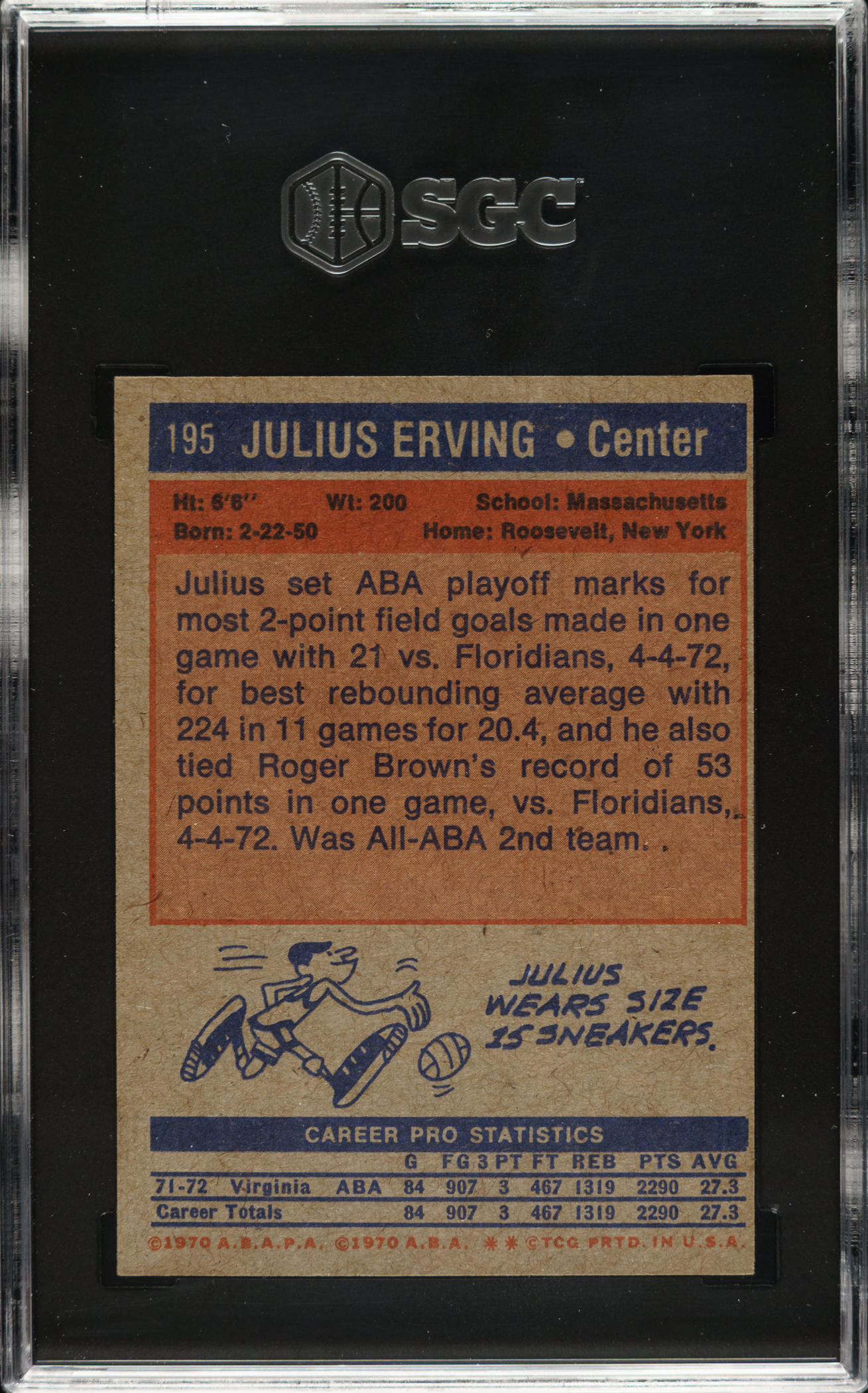 Graded EX+ 5.5 by SGC. Virgina Squires Hall of Famer Julius Erving.