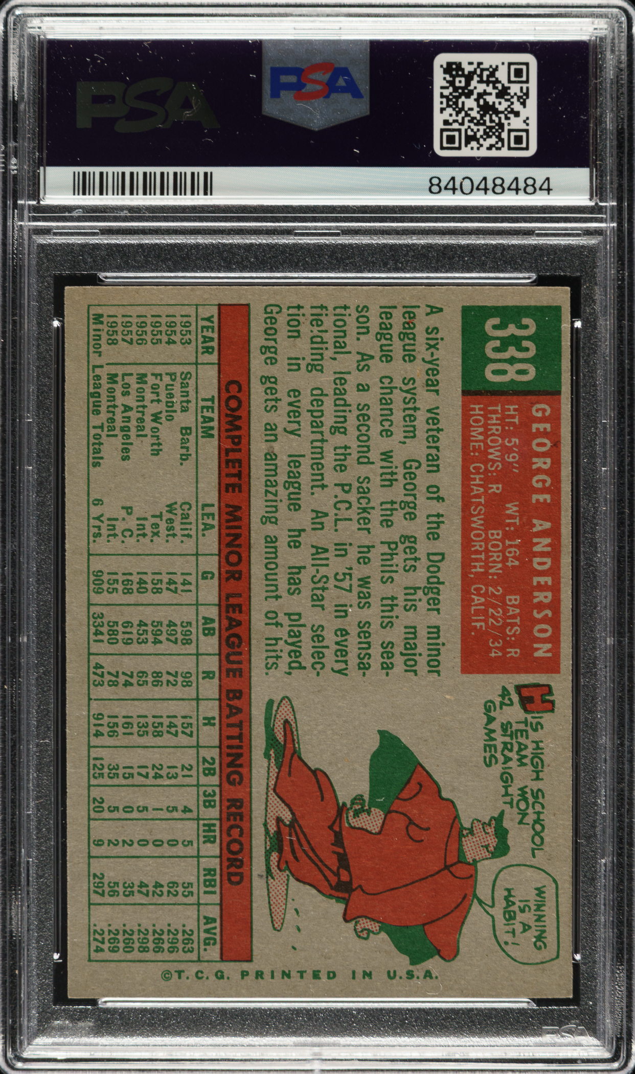 1959 Topps #338 George "Sparky" Anderson Rookie PSA NM 7