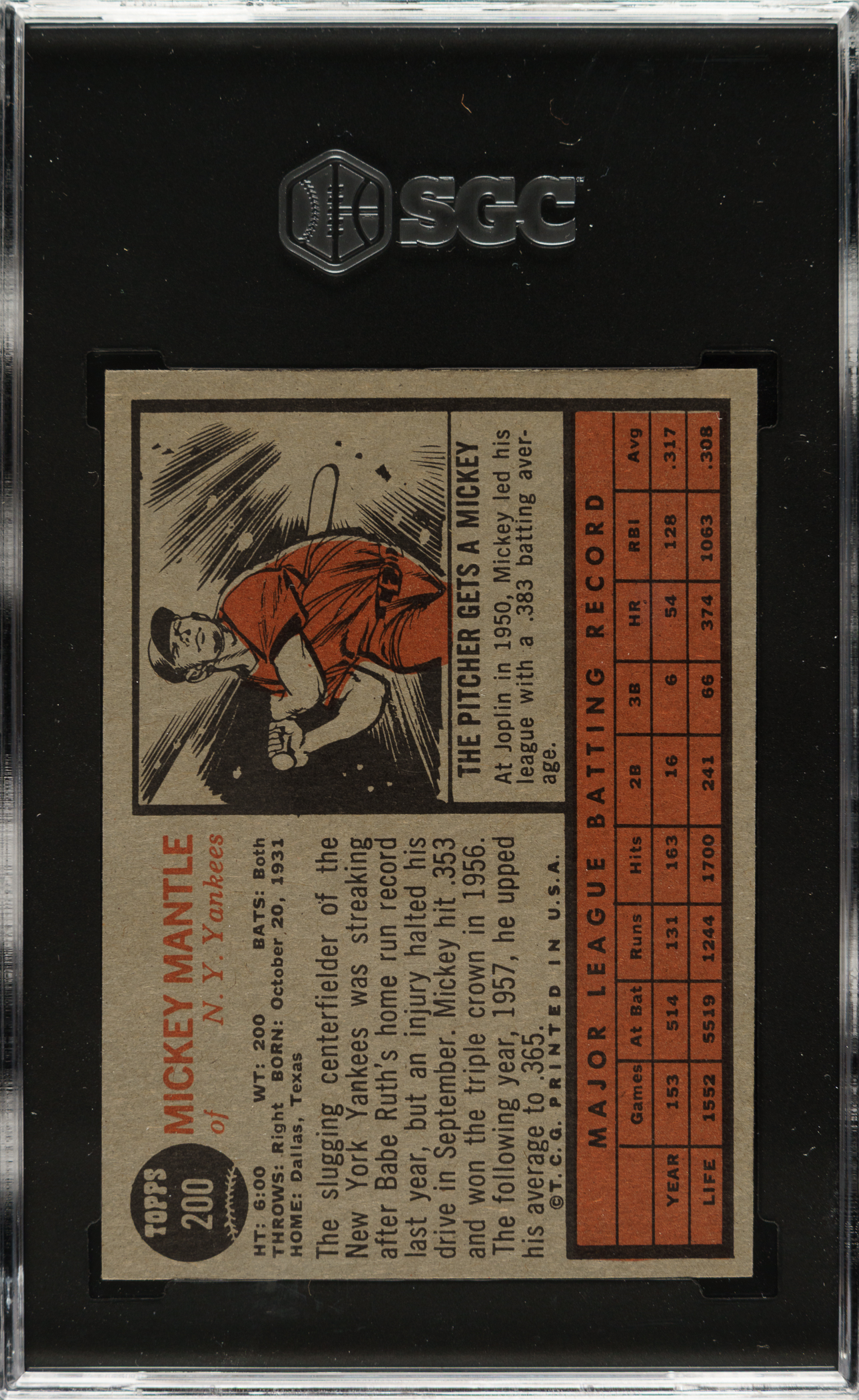 1962 Topps #200 Mickey Mantle SGC EX/NM 6