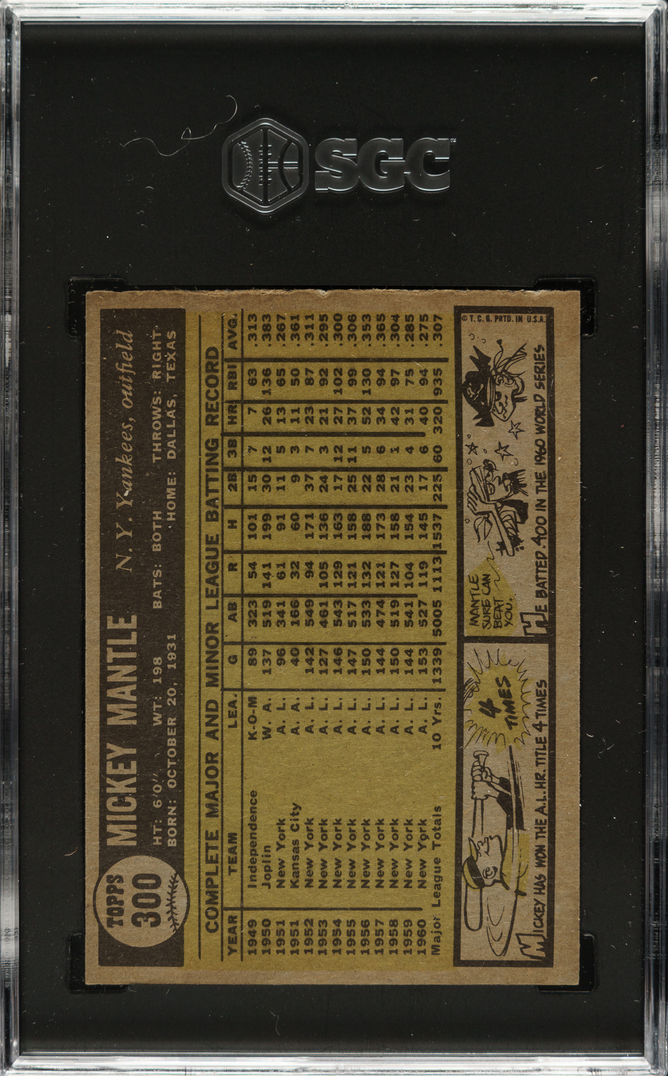 1961 Topps #300 Mickey Mantle SGC Authentic