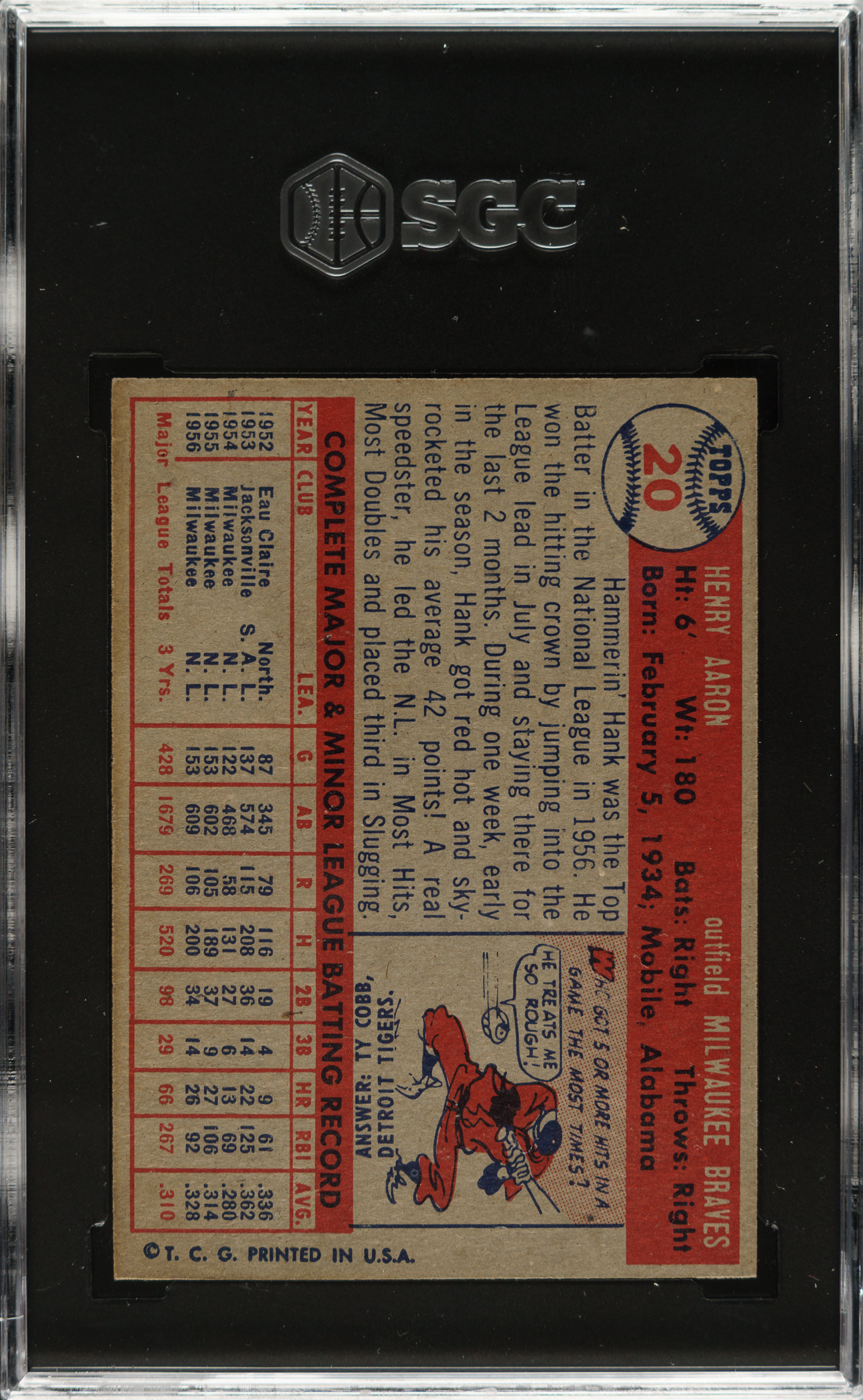 1957 Topps #20 Hank Aaron SGC Authentic