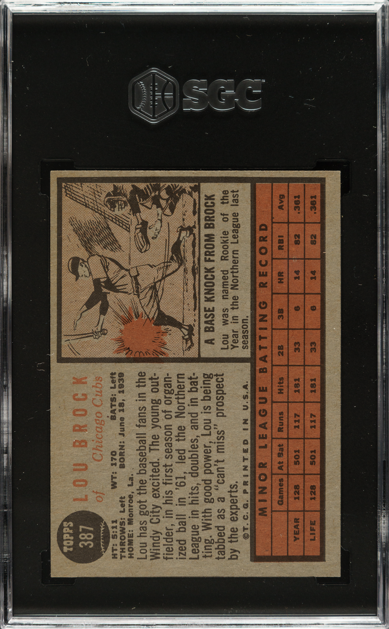 1962 Topps #387 Lou Brock Rookie SGC EX/NM 6