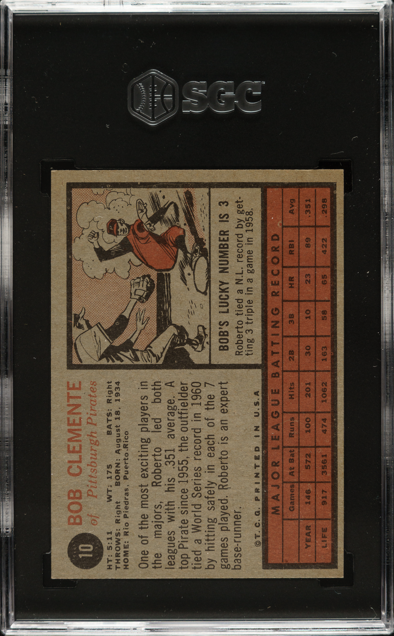 1962 Topps #10 Roberto Clemente SGC NM 7