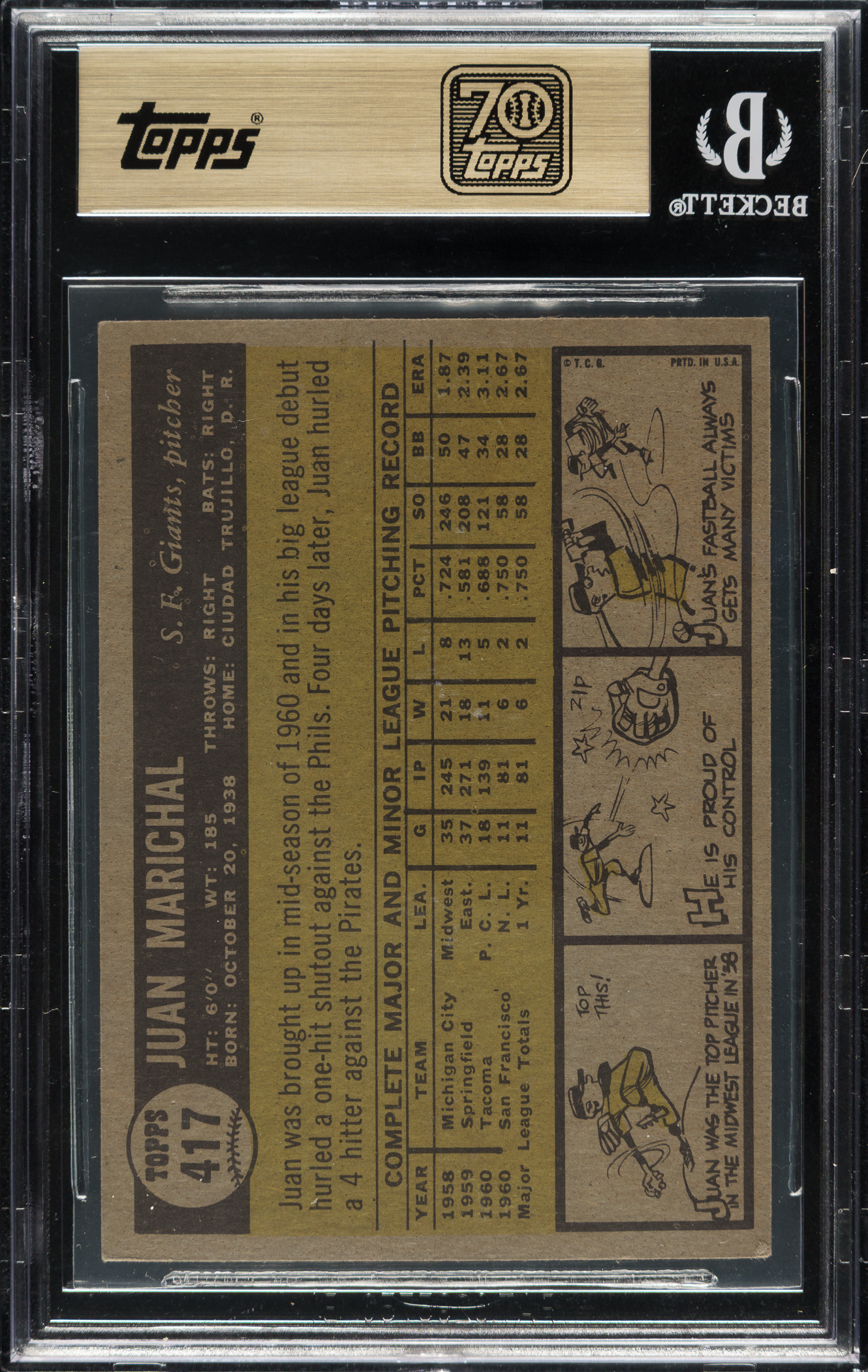 2021 Topps Baseball Series One 70 Years of Topps Baseball 1961 Topps #417 Juan Marichal Rookie #1/1 - Beckett