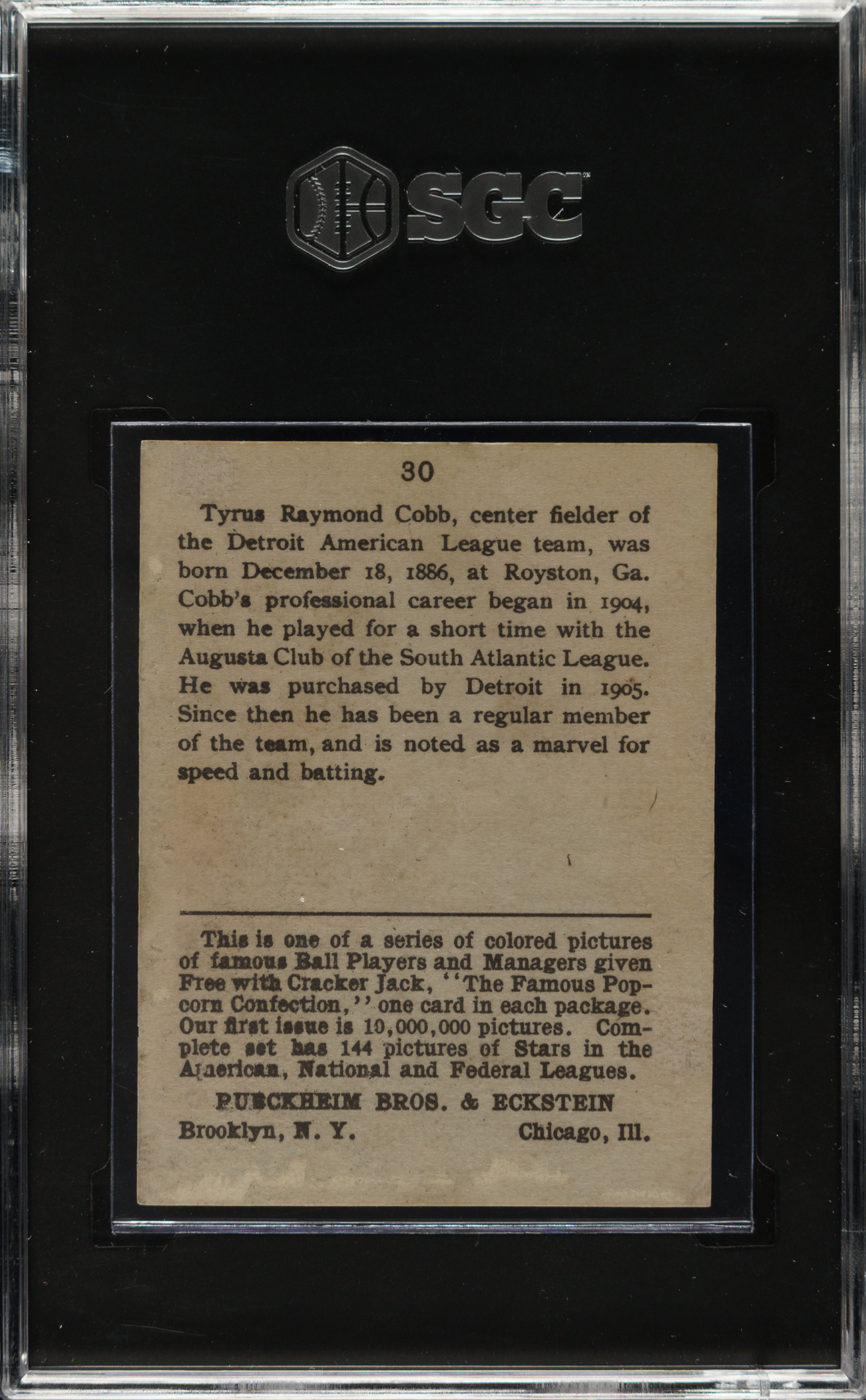 1914 E145 Cracker Jack #30 Ty Cobb SGC Authentic
