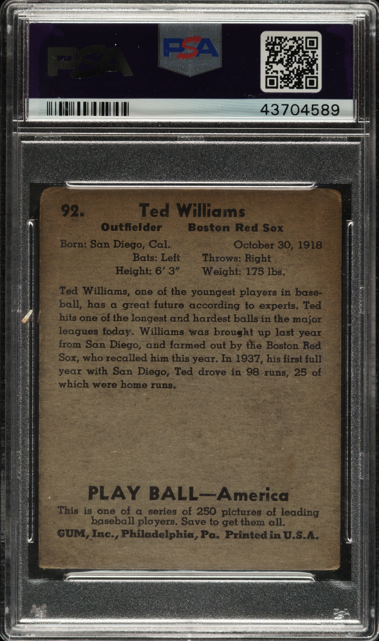 1939 R334 Play Ball #92 Ted Williams Rookie PSA GOOD+ 2.5