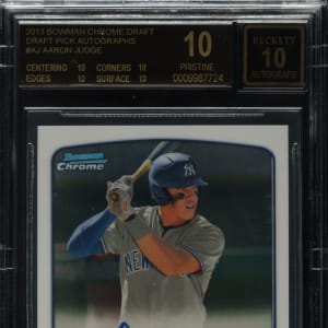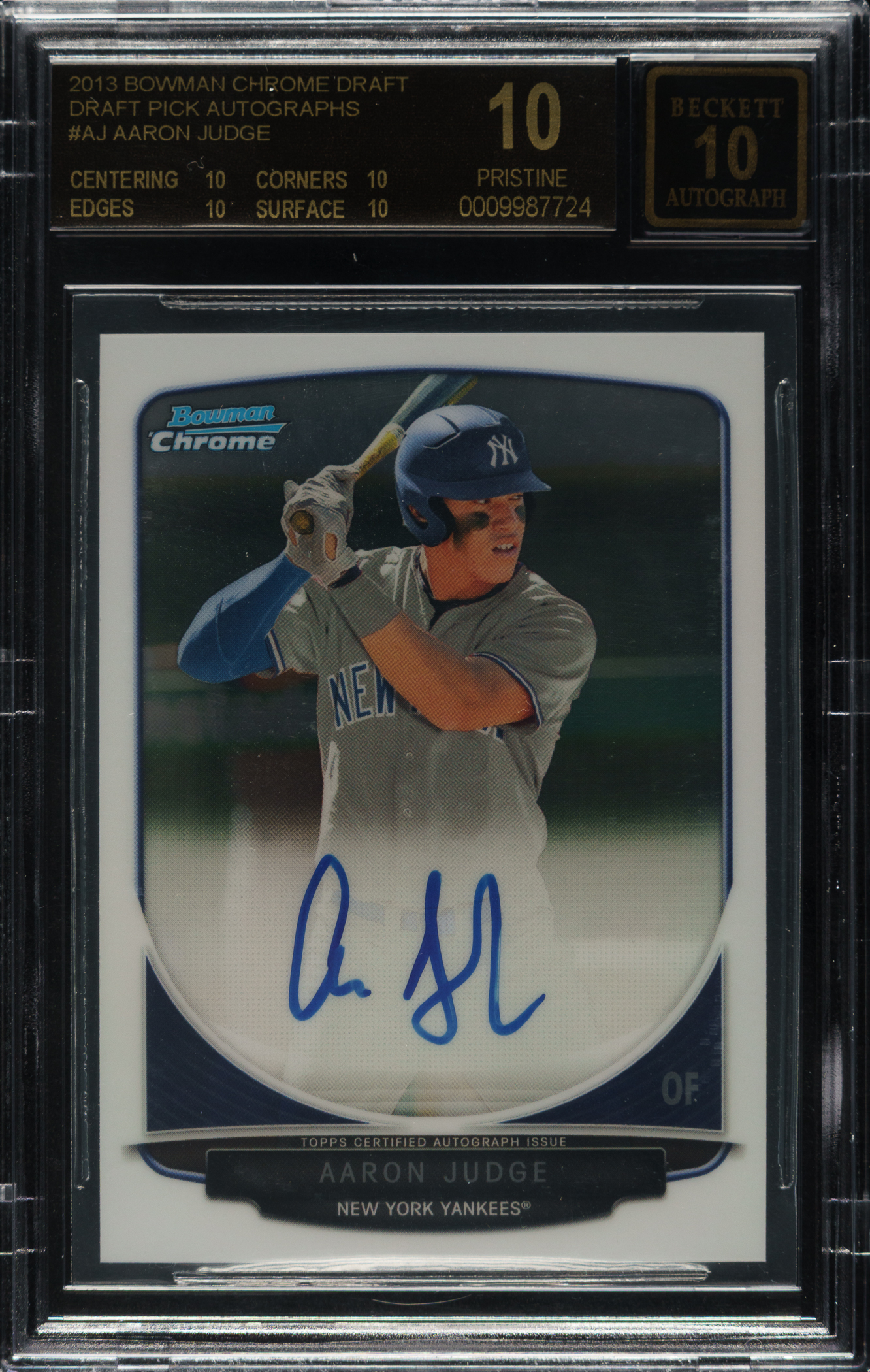 Graded PRISTINE 10 by BGS with a GEM MINT 10 signature. New York Yankees superstar Aaron Judge.