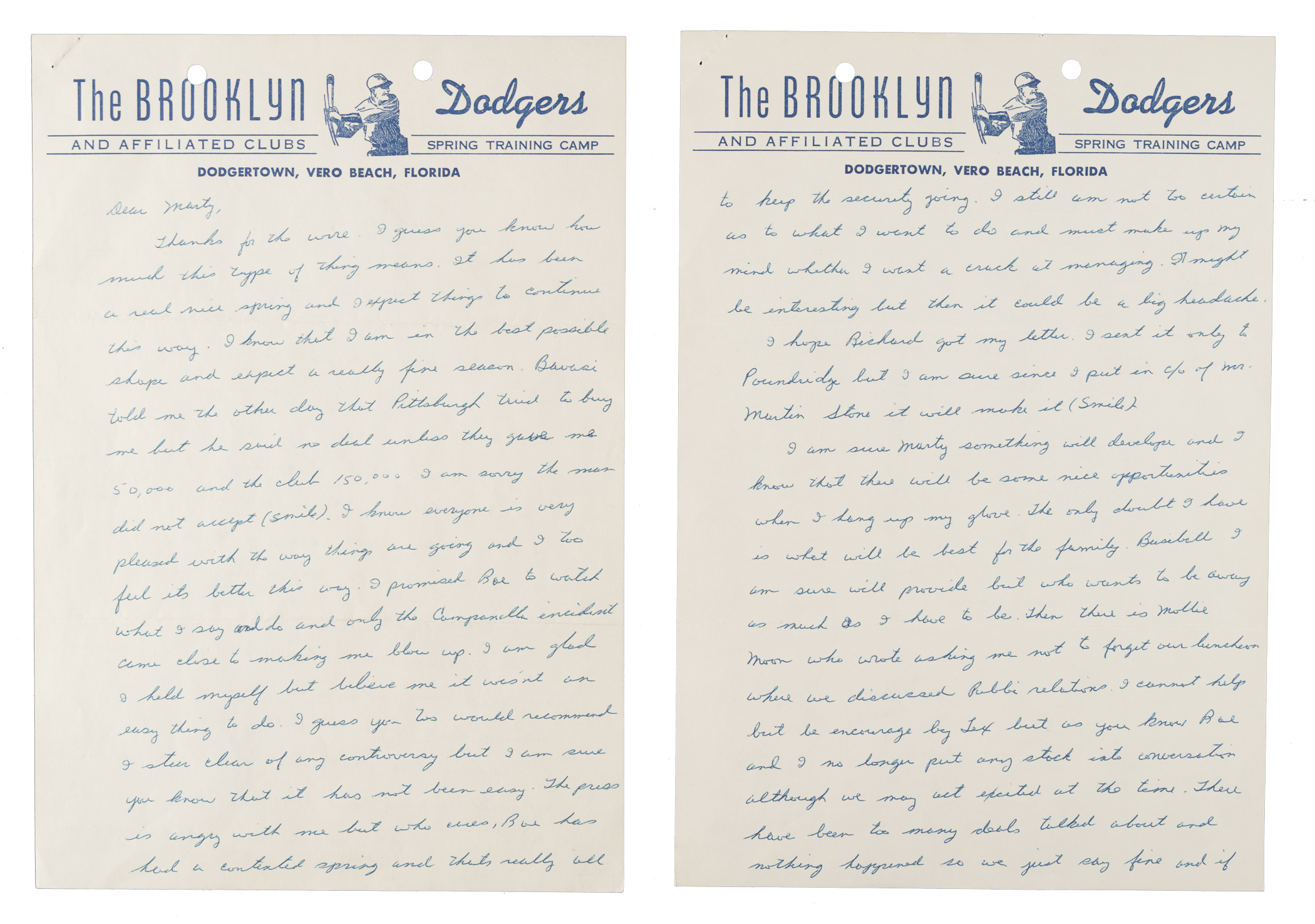 Brooklyn Dodgers Hall of Famer Jackie Robinson signed letter. Full LOA from James Spence/JSA.