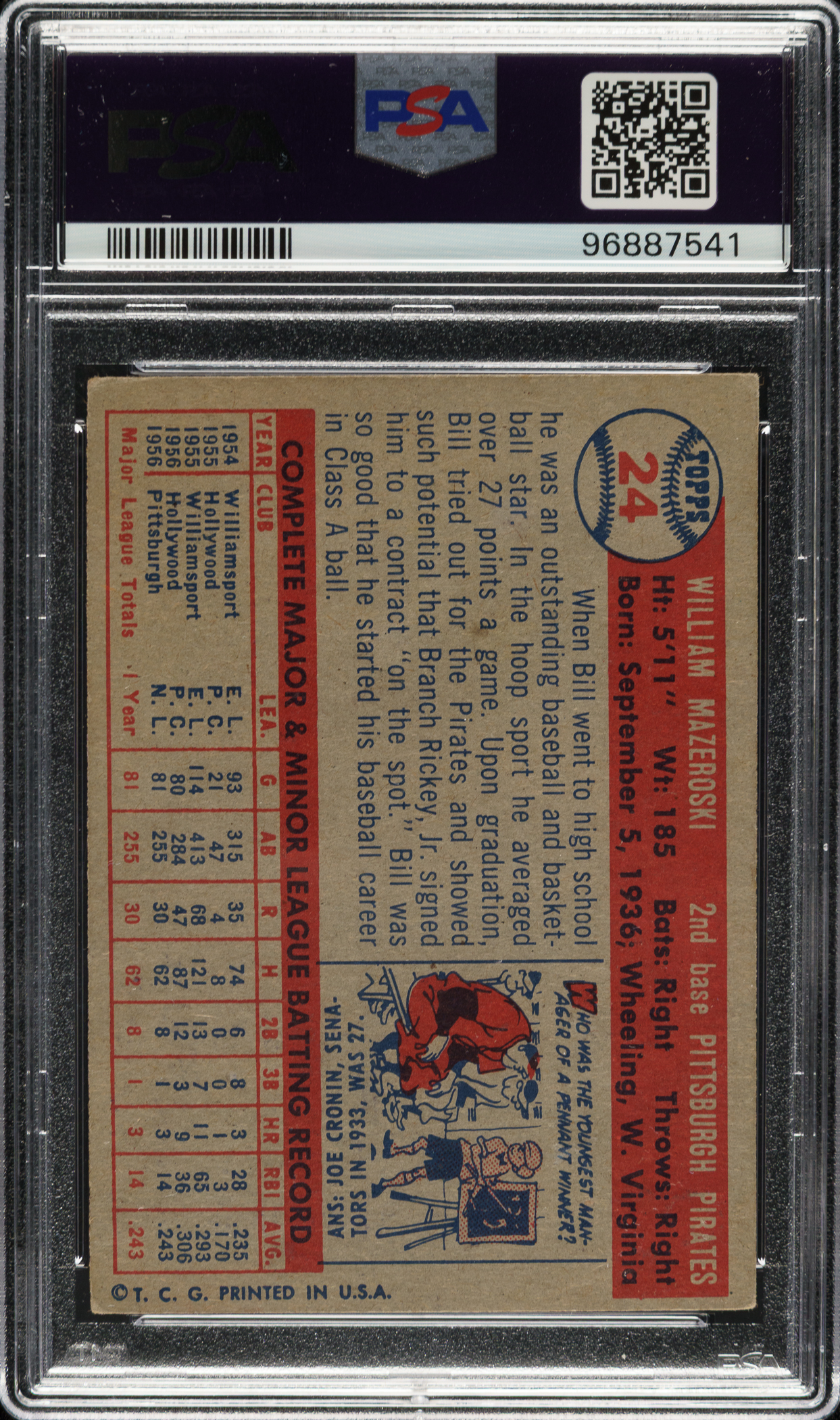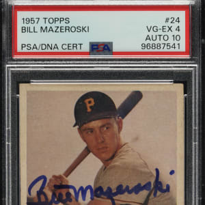 PSA/DNA has encapsulated the item, grading the card a VG-EX 4 and the signature a GEM MINT 10. Pittsburgh Pirates Hall of Famer Bill Mazeroski.