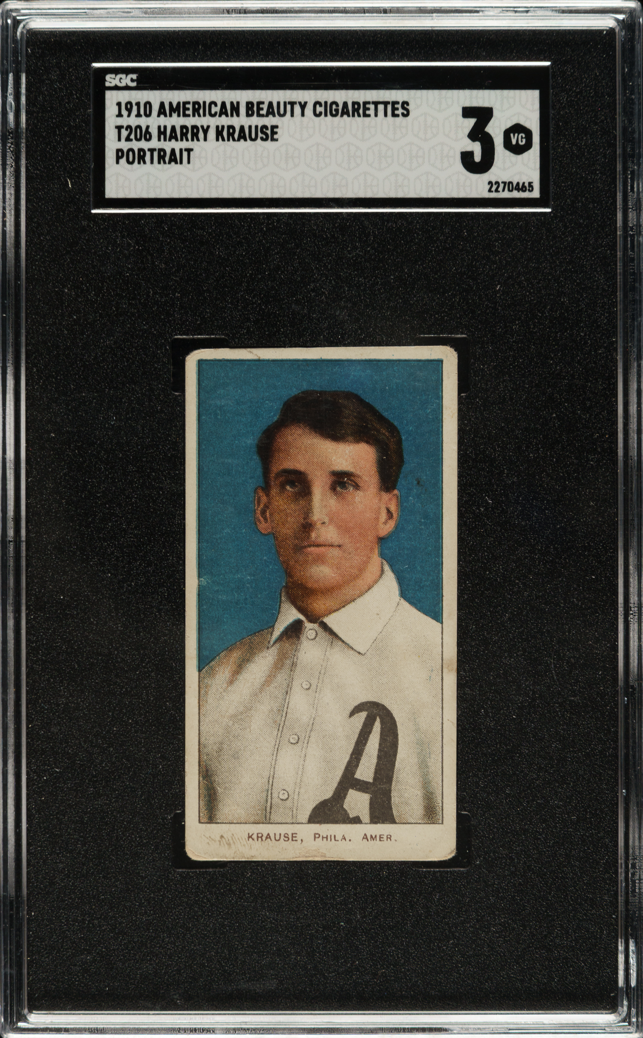 1909-1911 T206 White Border Harry Krause Portrait SGC VG 3 - American Beauty 350 Back
