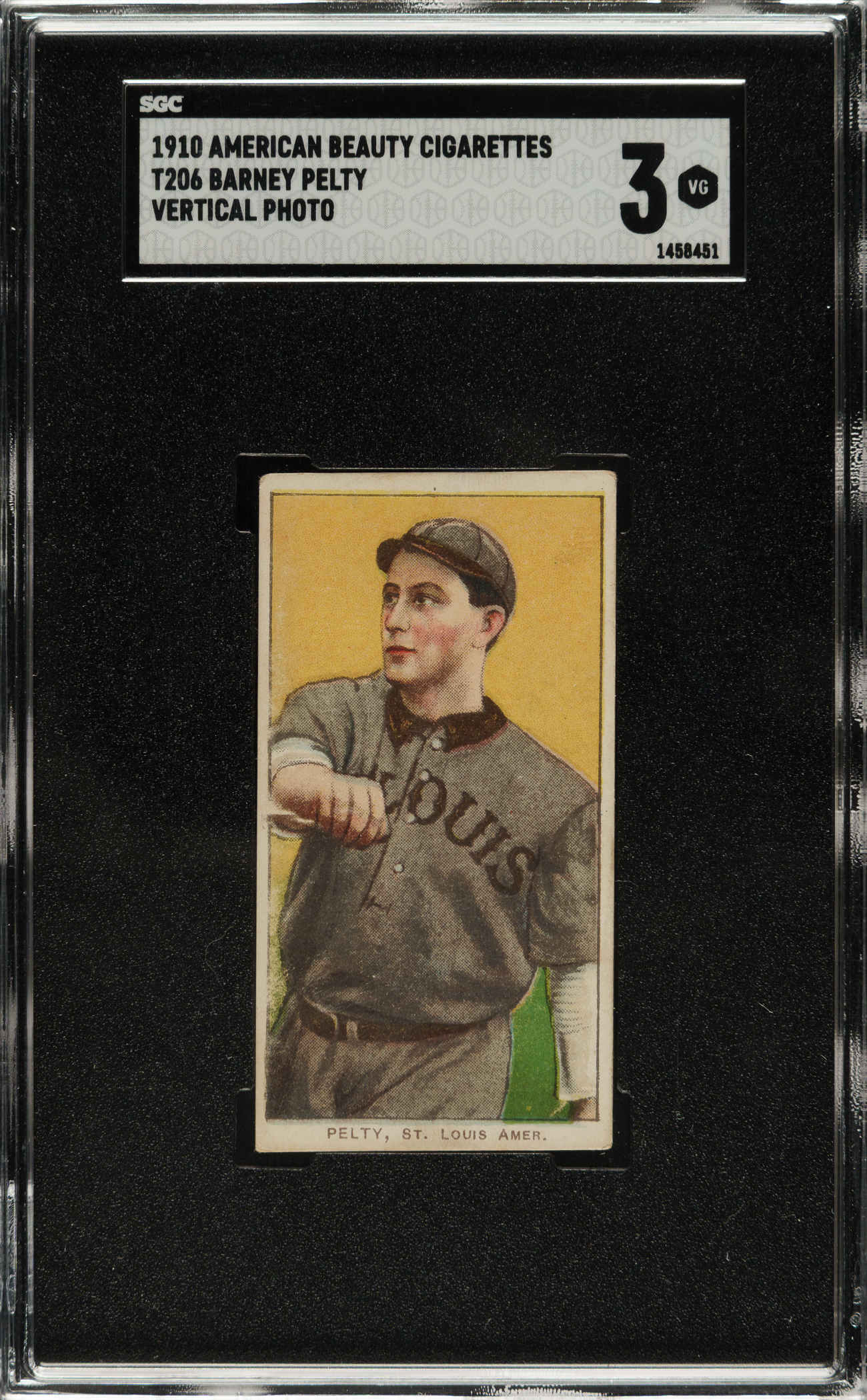 1909-1911 T206 White Border Barney Pelty Vertical SGC VG 3 - American Beauty 350 Back