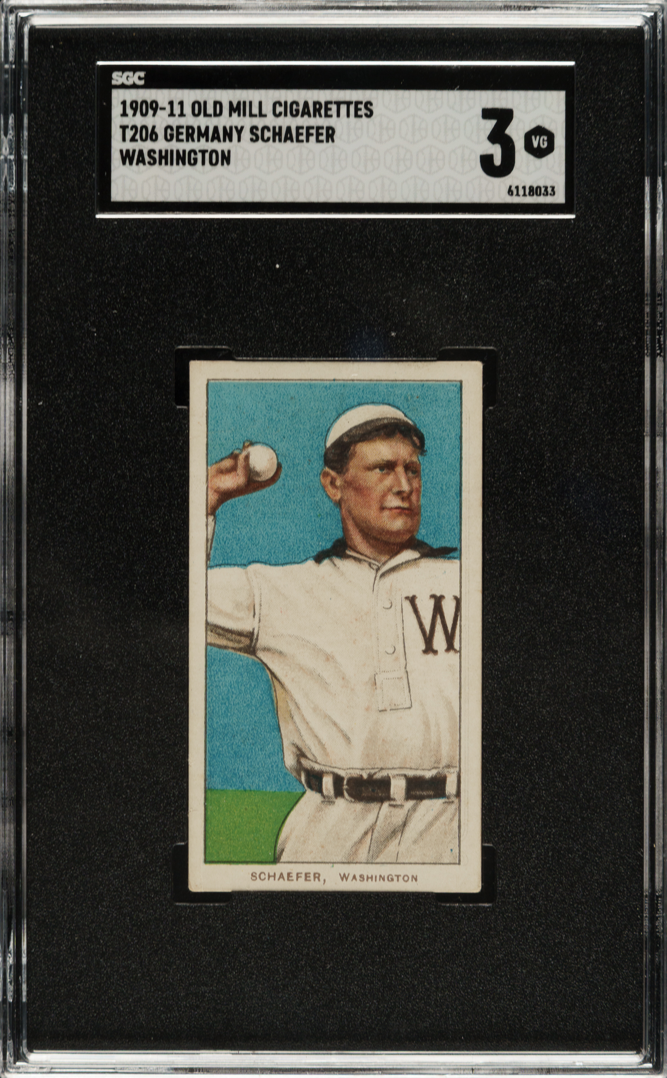 1909-1911 T206 White Border Germany Schaefer Washington SGC VG 3 - Old Mill Back