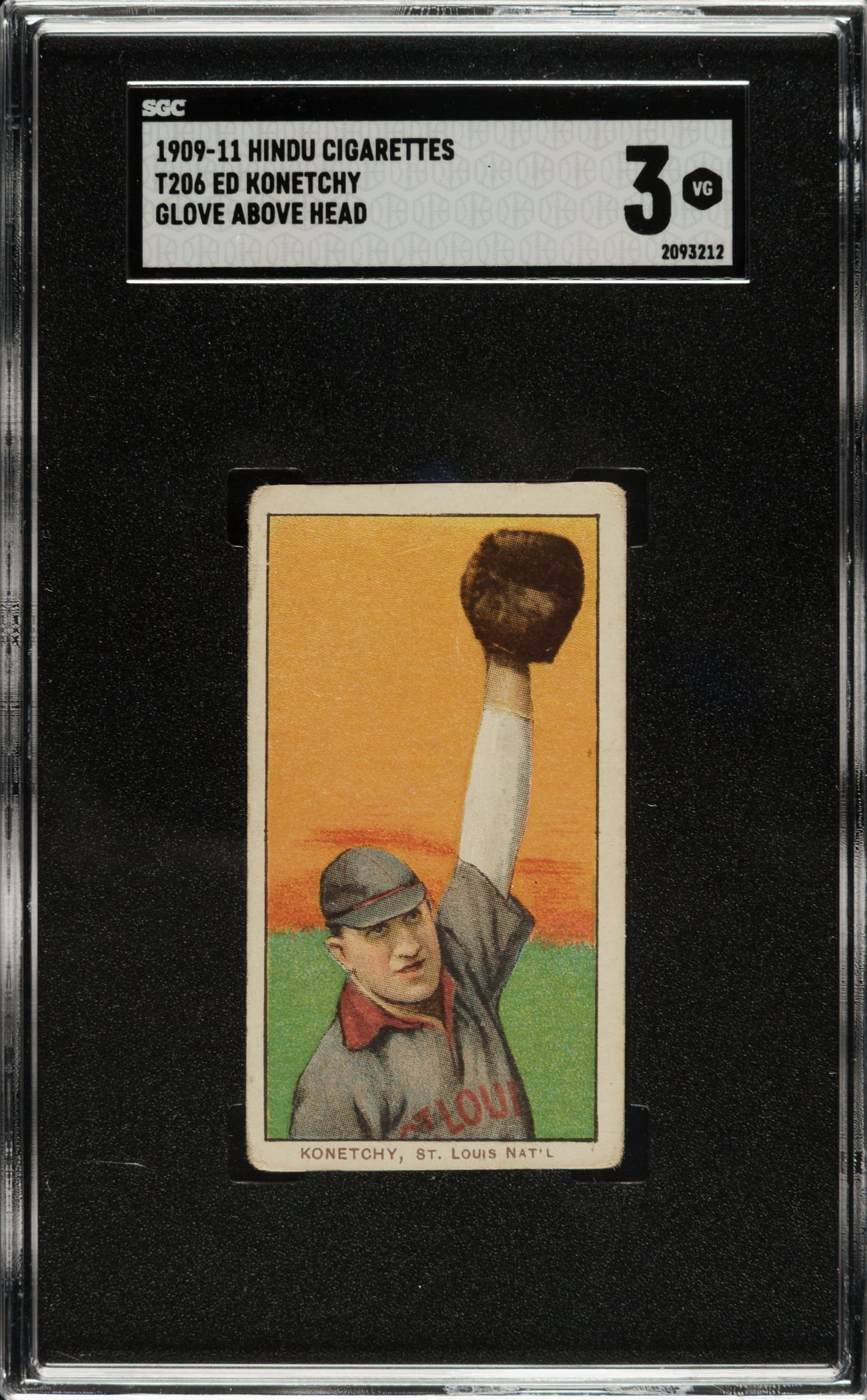 1909-1911 T206 White Border Ed Konetchy Glove Above Head SGC VG 3 - Brown Hindu Back