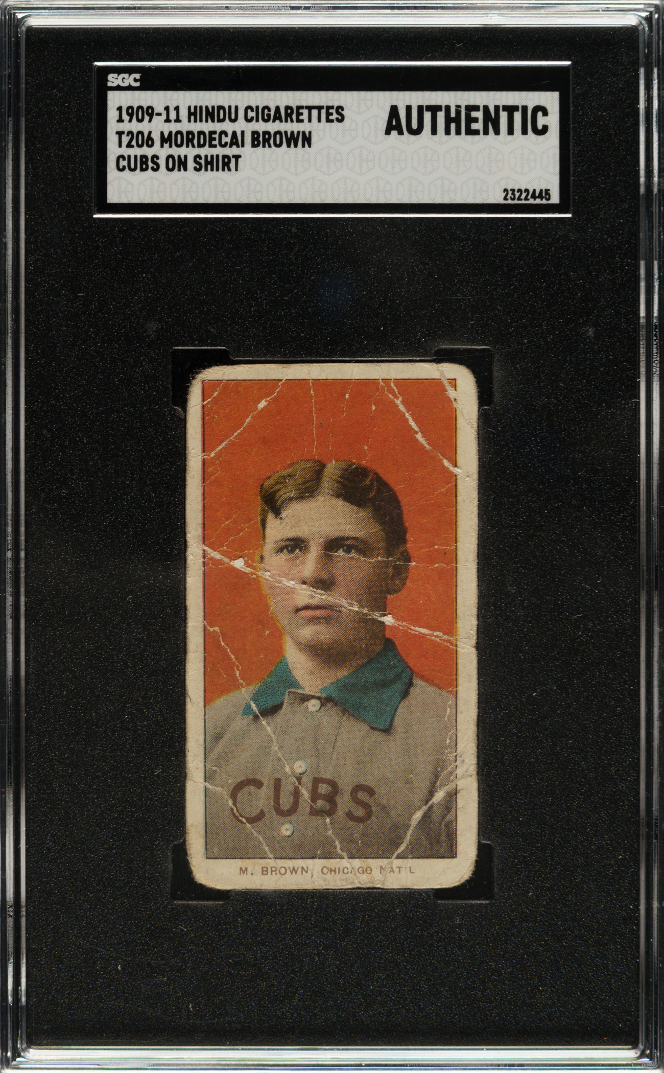 Encapsulated as Authentic by SGC. Chicago Cubs Hall of Famer Mordecai Brown.