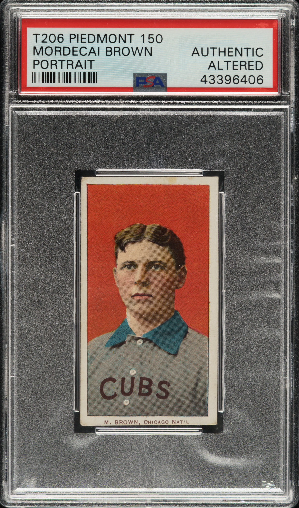 Encapsulated as Authentic by PSA. Chicago Cubs Hall of Famer Mordecai Brown.