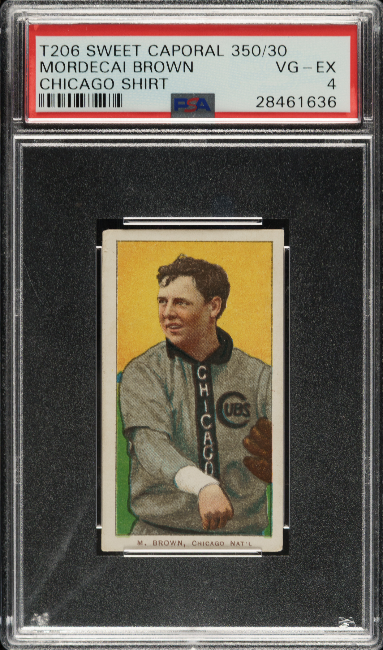 Graded VG-EX 4 by PSA. Chicago Cubs Hall of Famer Mordecai Brown.