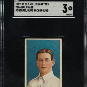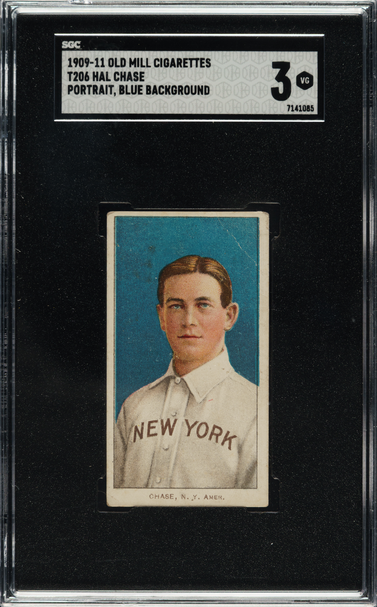 1909-1911 T206 White Border Hal Chase Portrait Blue Background SGC VG 3 - Old Mill Back