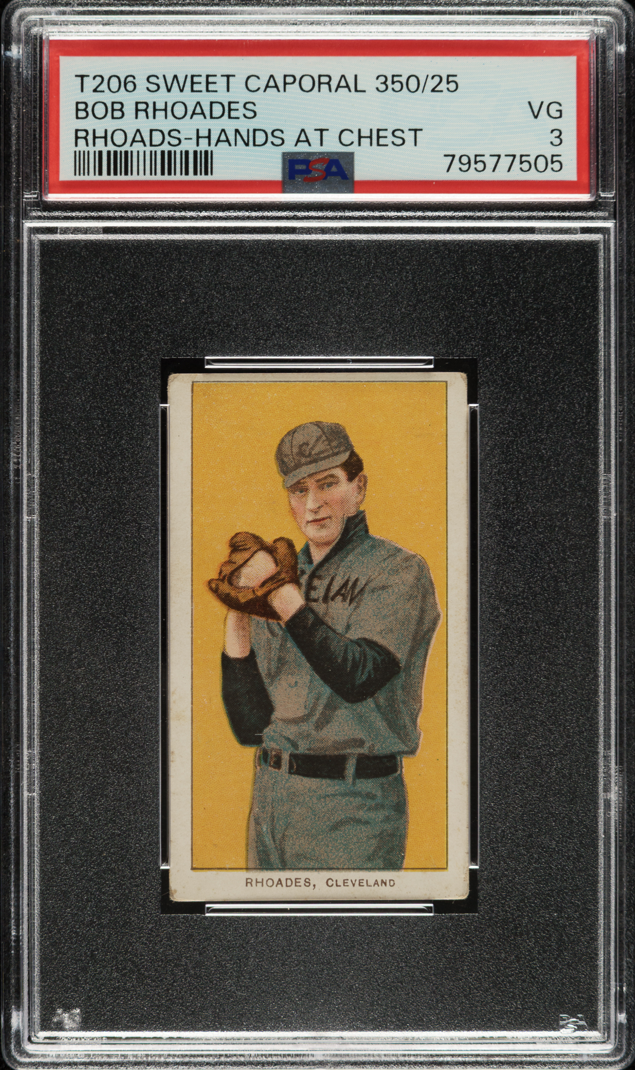 1909-1911 T206 White Border Bob Rhoades Hands at Chest PSA VG 3