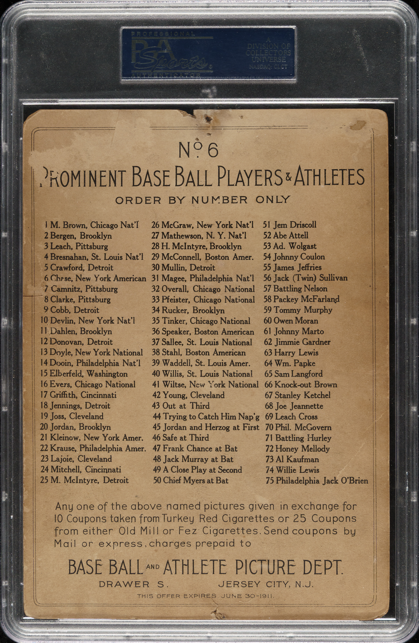 1911 T3 Turkey Red #6 Hal Chase PSA POOR 1