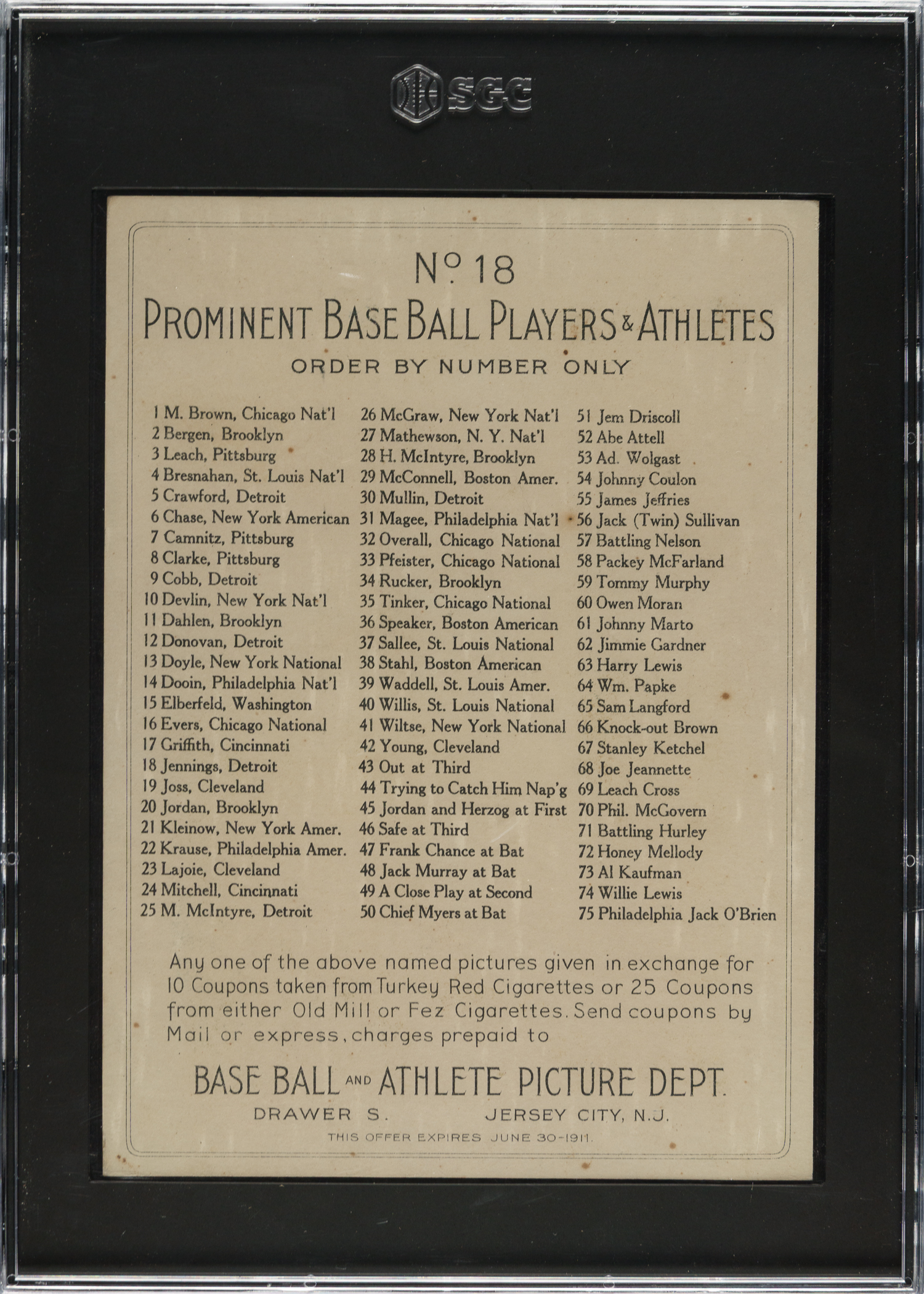Encapsulated as Authentic by SGC. Detroit Tigers Hall of Famer Hughie Jennings.
