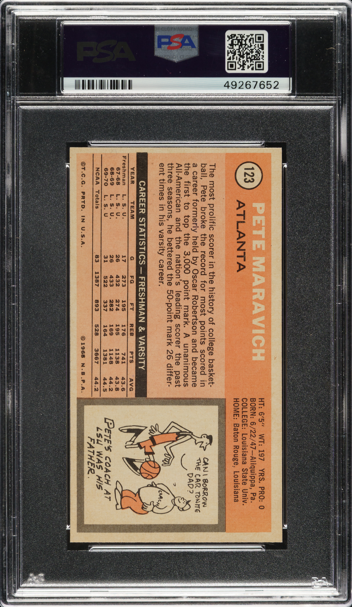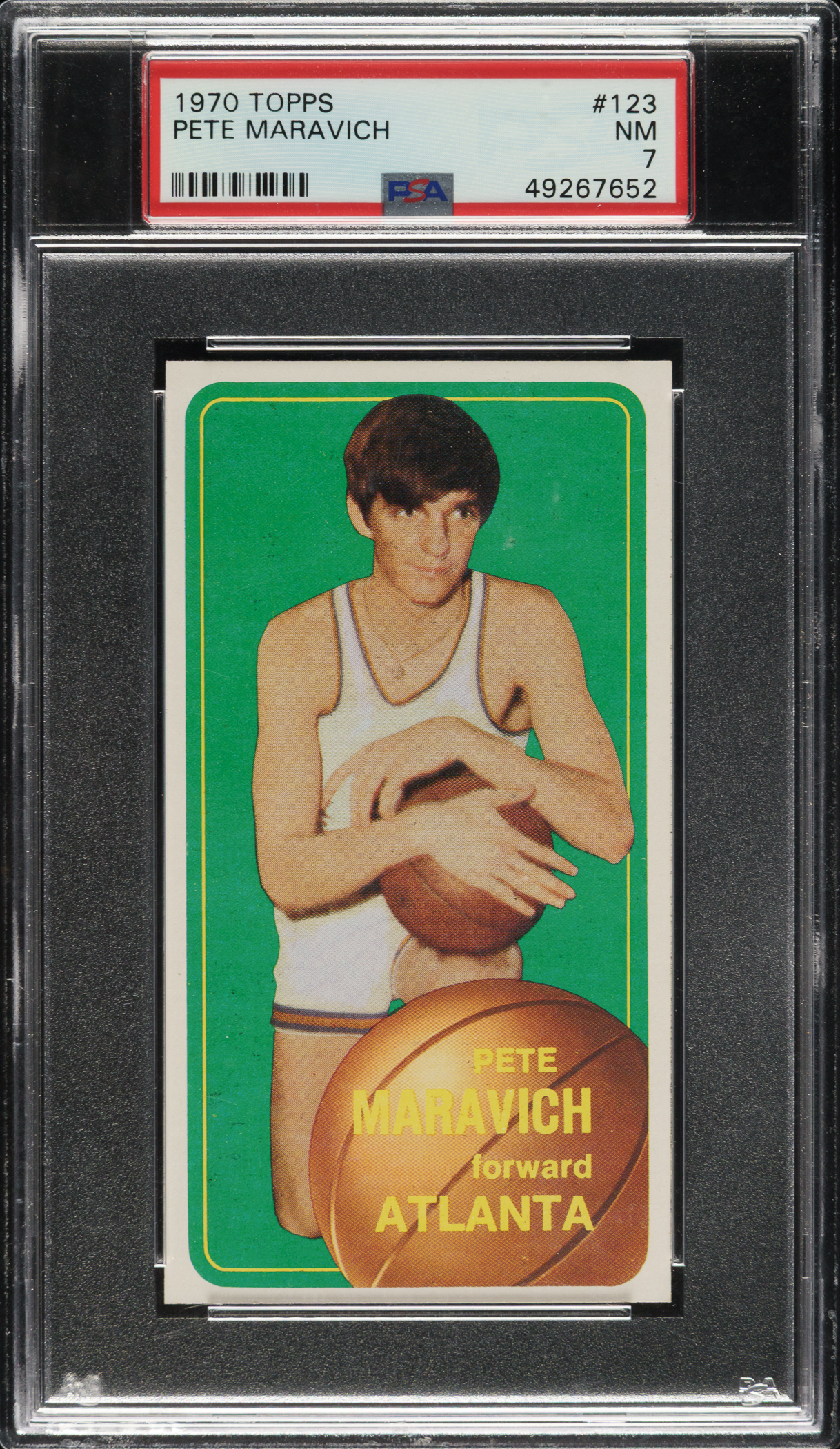 Graded NM 7 by PSA. Atlanta Hawks Hall of Famer Pete Maravich.