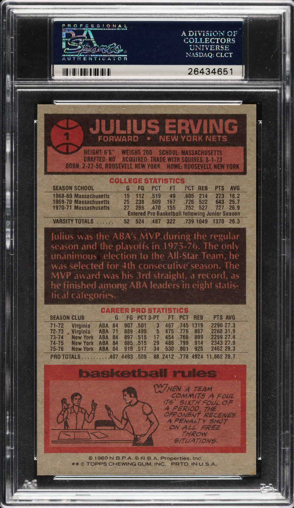 1976-1977 Topps Basketball #1 Julius Erving PSA NM 7